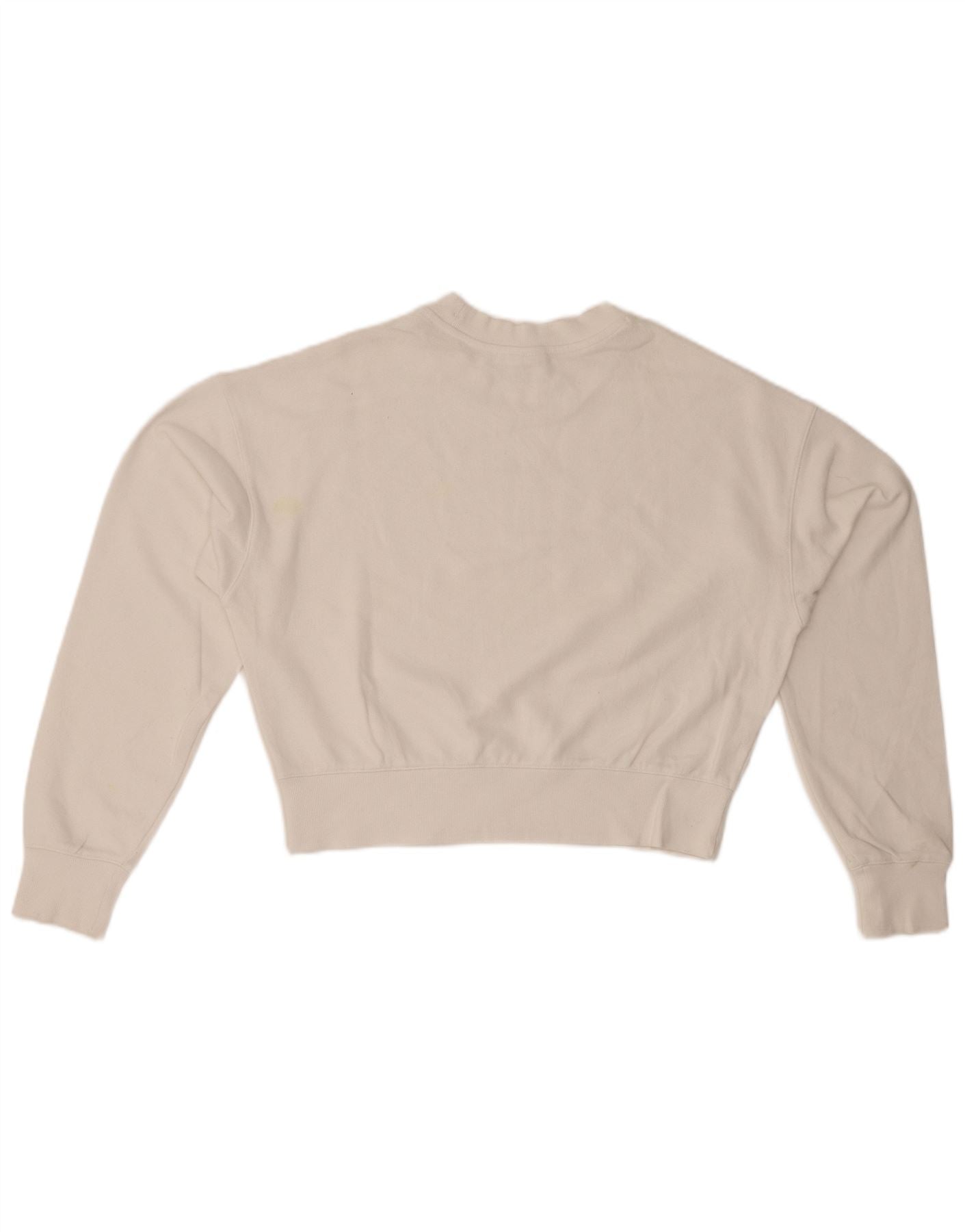 CHAMPION Womens Oversized Crop Sweatshirt Jumper UK 14 Medium White Cotton