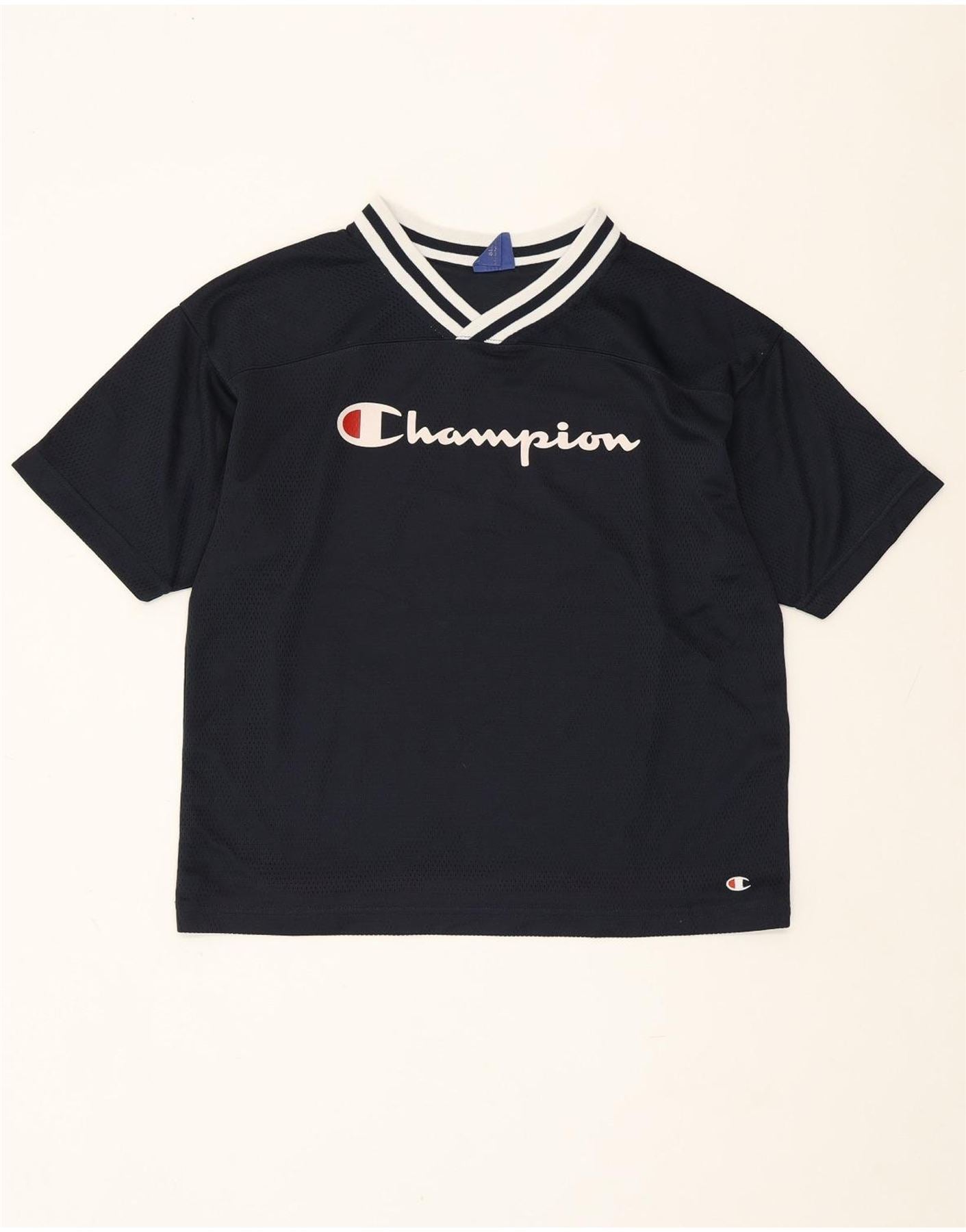 Home > Γυναικεία > Ρούχα Depop > Γυναικείο μπλουζάκι με γραφικά μεγάλου μεγέθους CHAMPION Top 10 Small Navy Blue