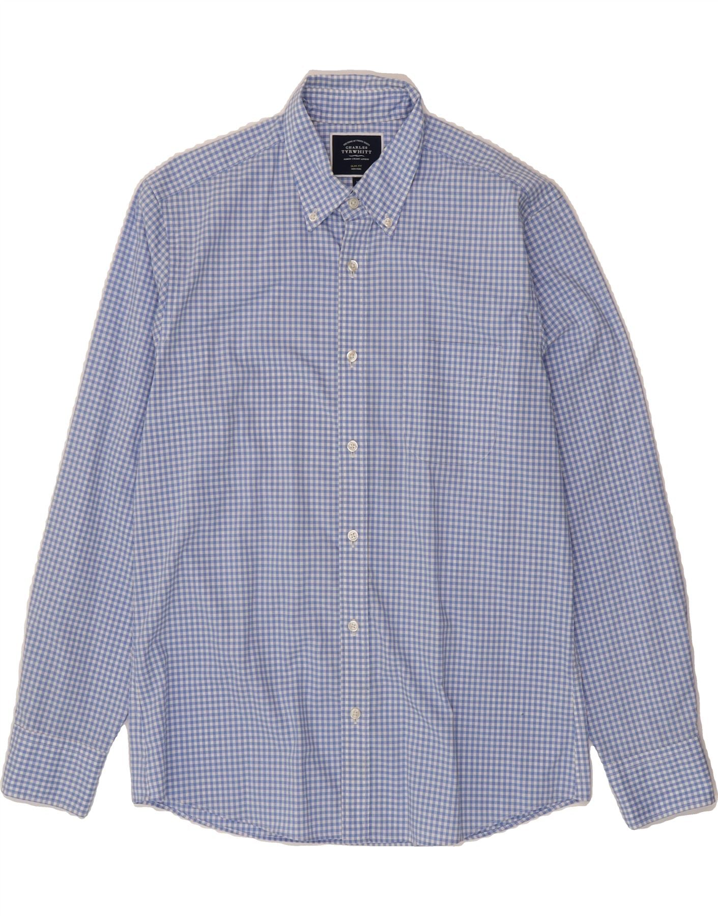 CHARLES TYRWHITT Mens Slim Fit Shirt Medium Blue Gingham Cotton