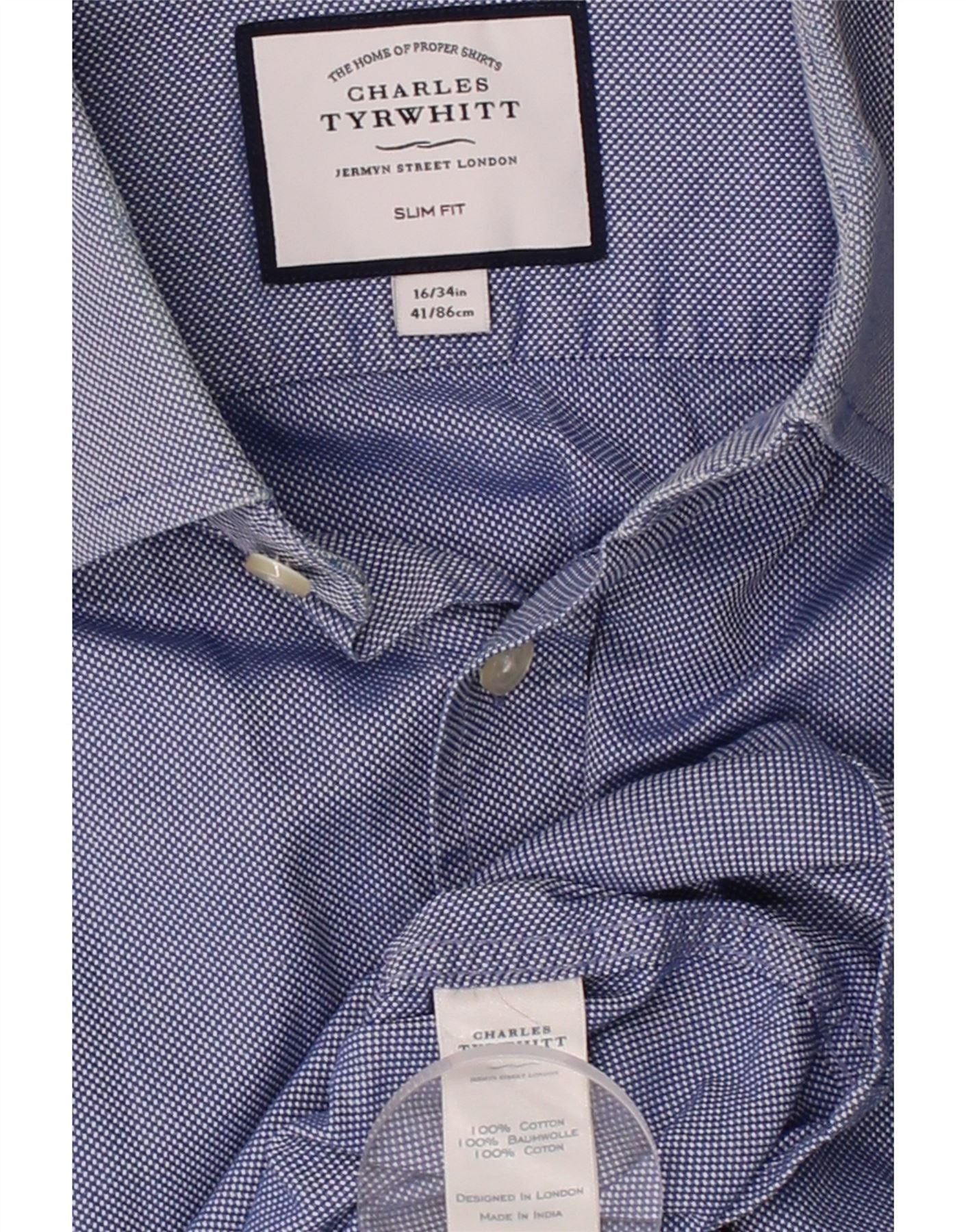 CHARLES TYRWHITT Mens Slim Fit Shirt Size 16 41 Large Blue Check Cotton
