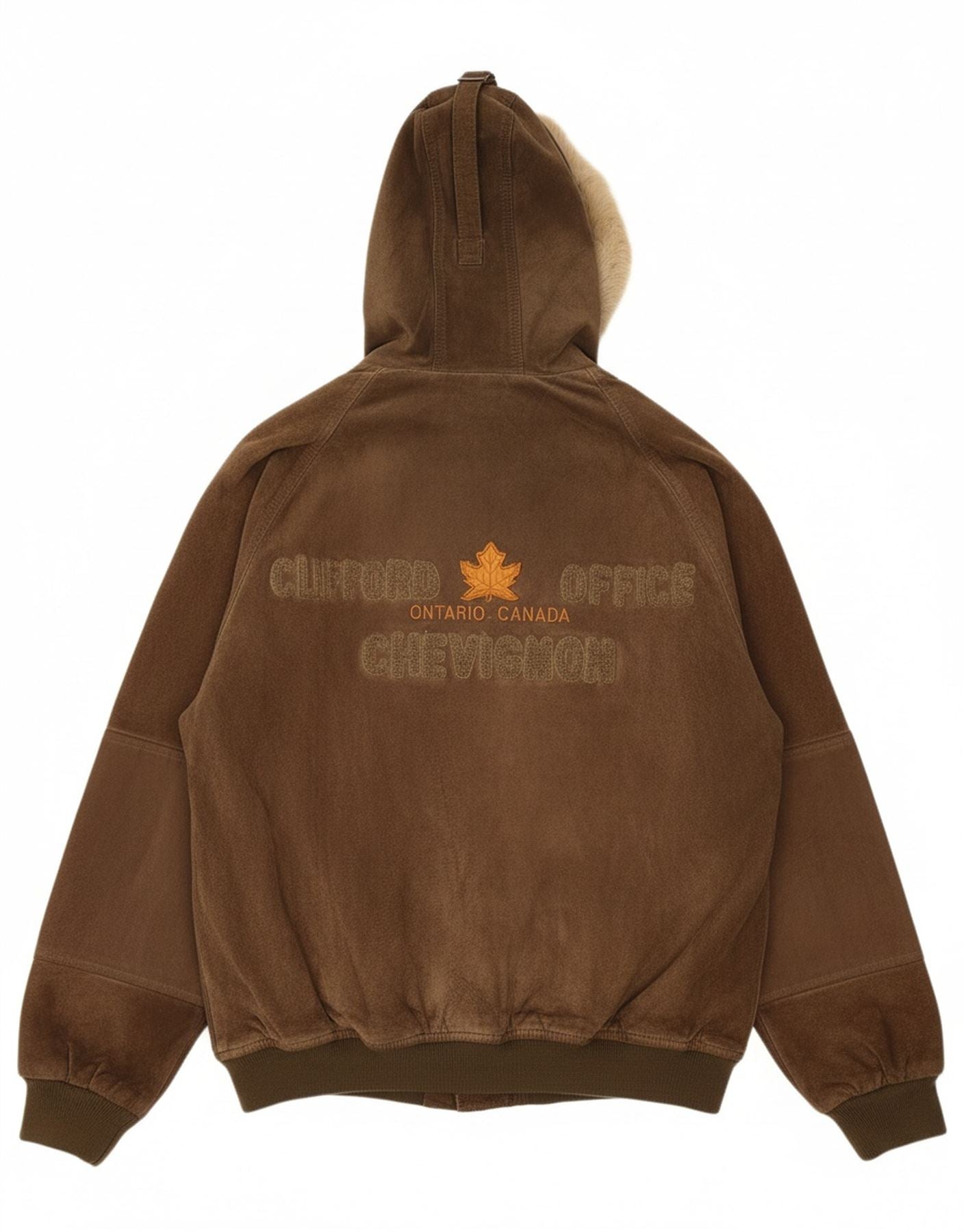 CHEVIGNON Mens Hooded Suede Bomber Jacket UK 40 Large Brown Leather