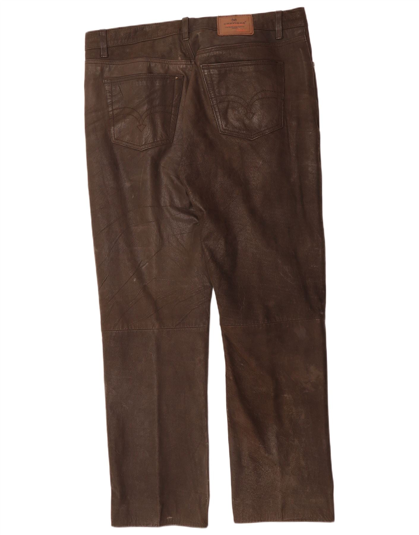 Ανδρικό δερμάτινο ίσιο παντελόνι CHEVIREX W40 L33 Καφέ Δερμάτινο