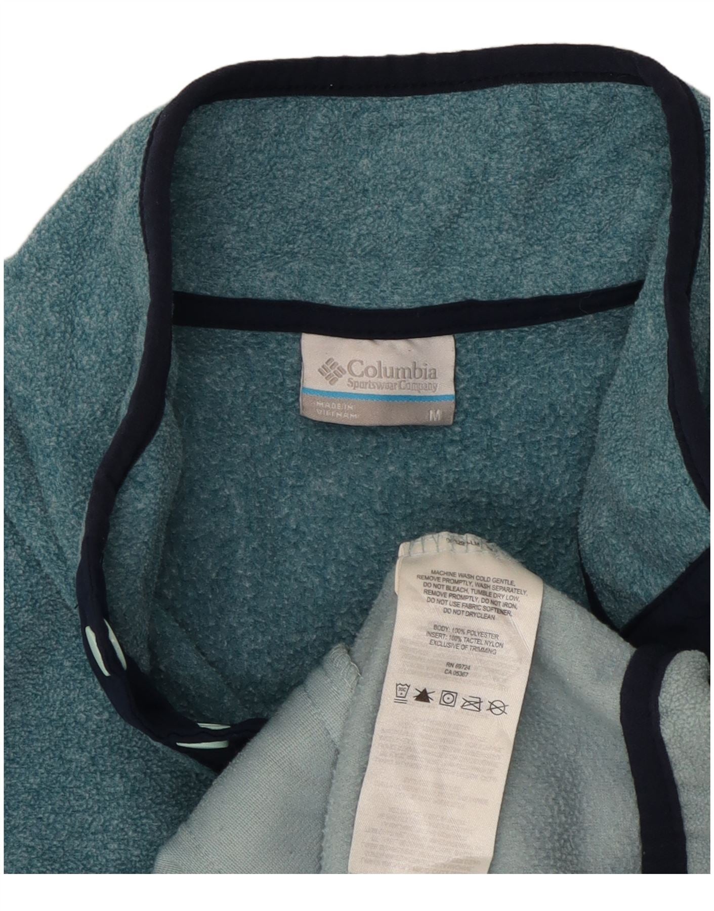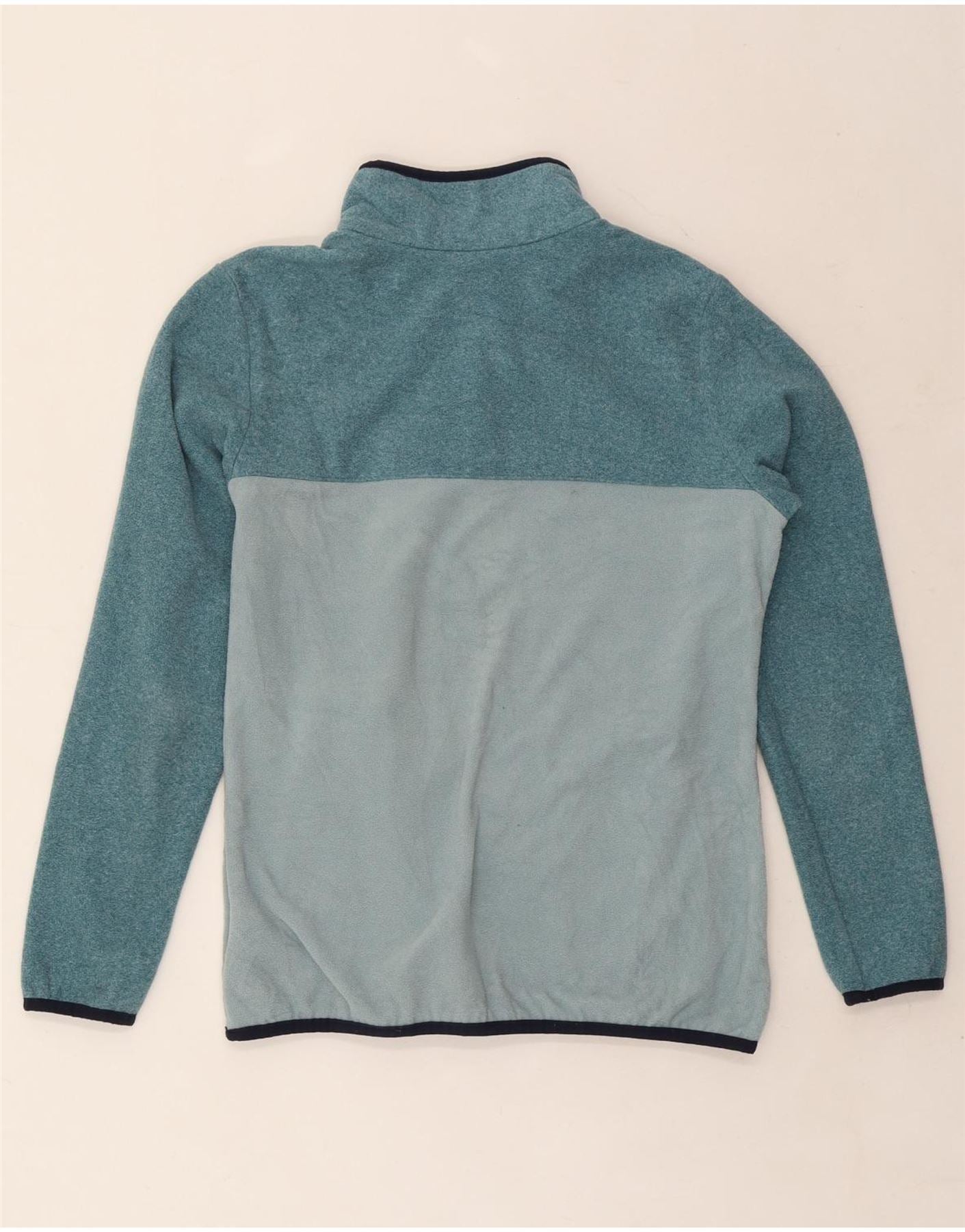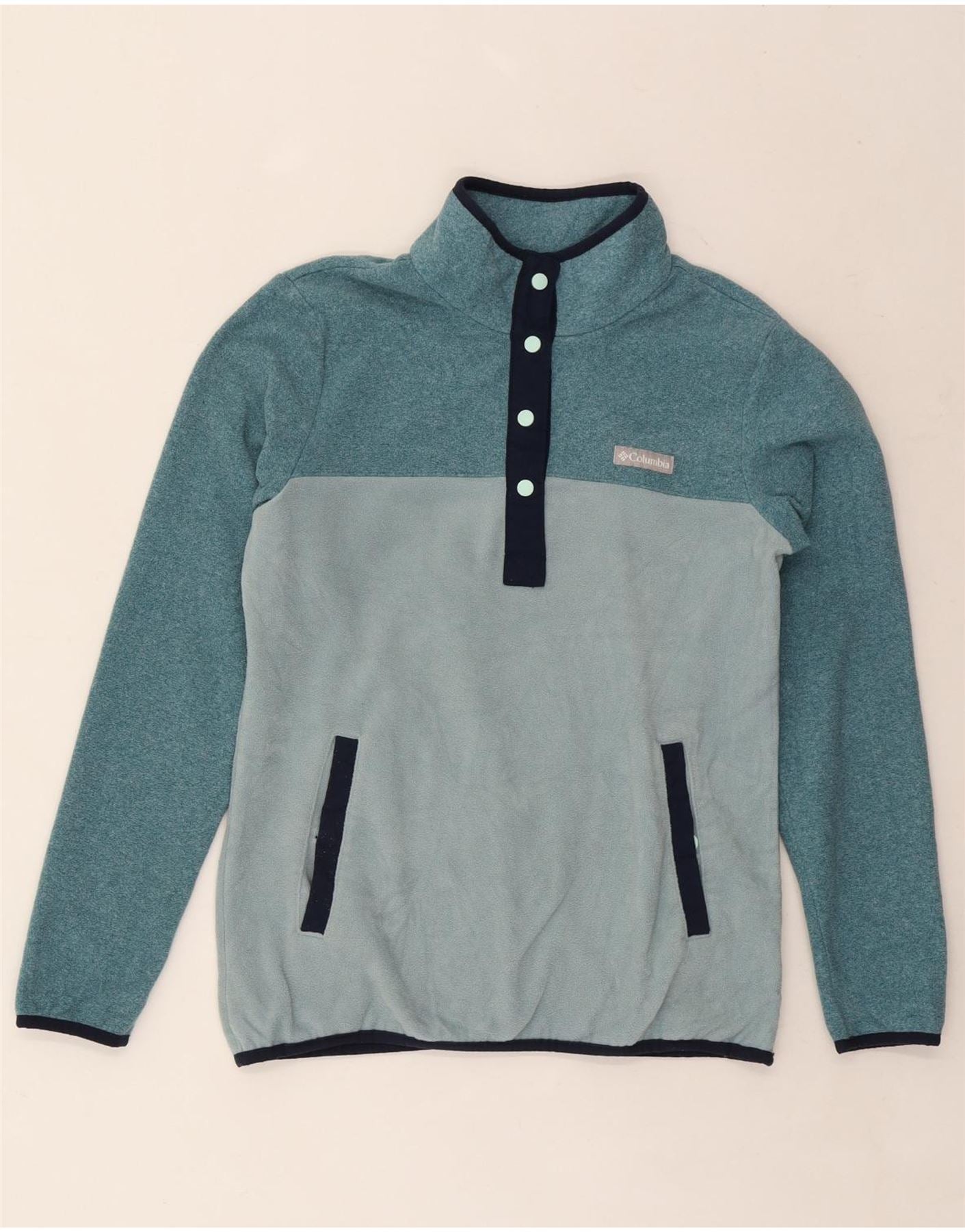 COLUMBIA Womens Button Neck Fleece Jumper UK 12 Medium Blue Colourblock