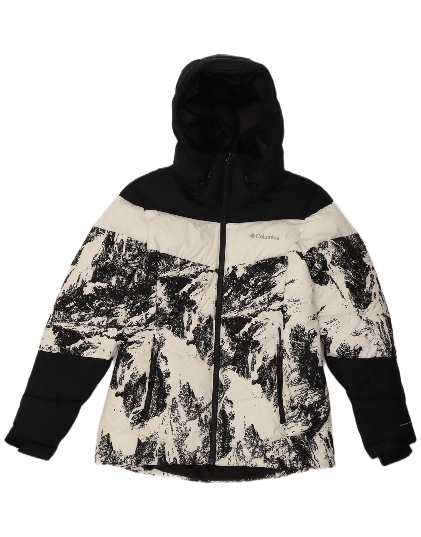COLUMBIA Womens Hooded Padded Jacket UK 10 Small White Colourblock