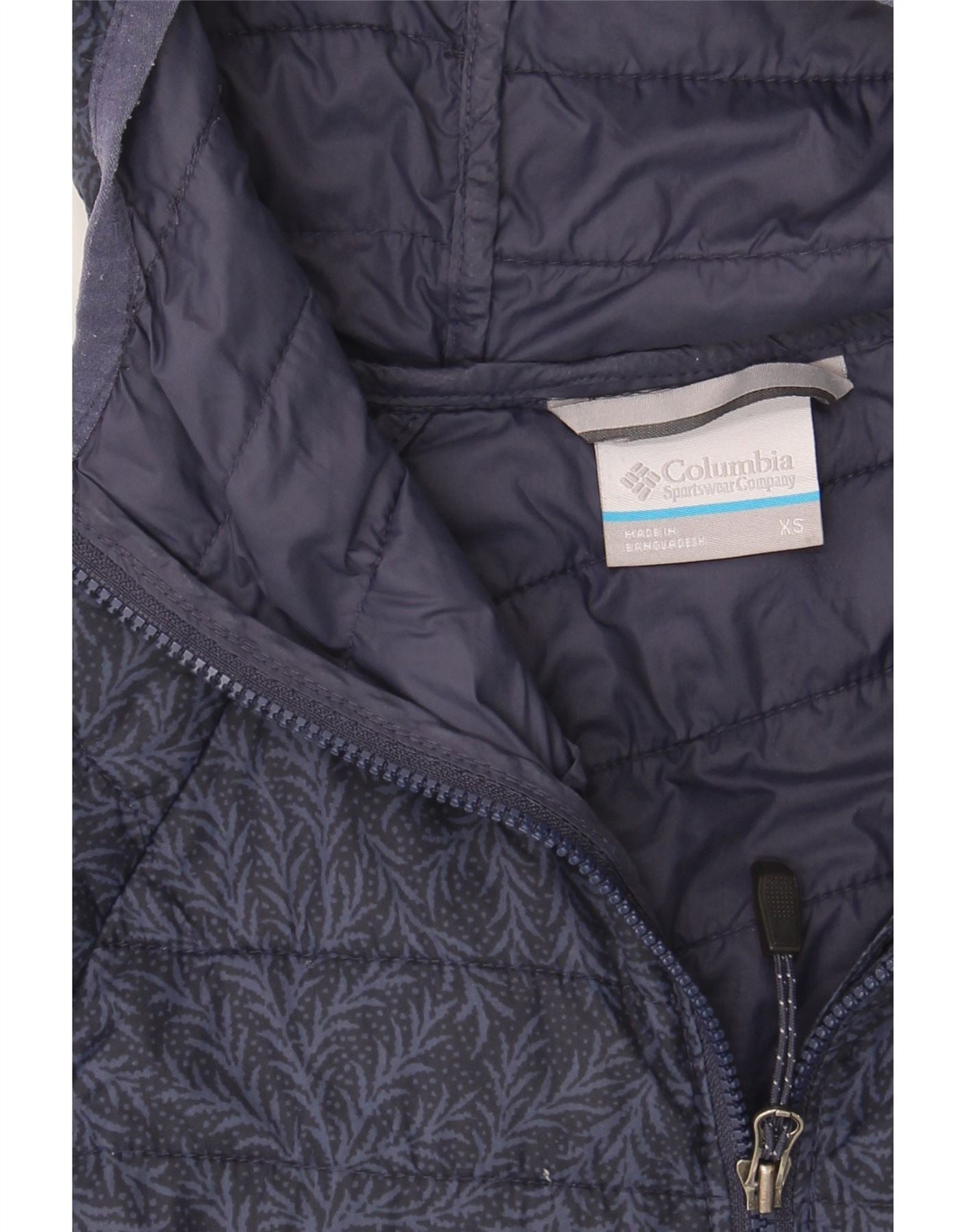 COLUMBIA Womens Hooded Padded Jacket UK 6 XS Navy Blue Floral Nylon