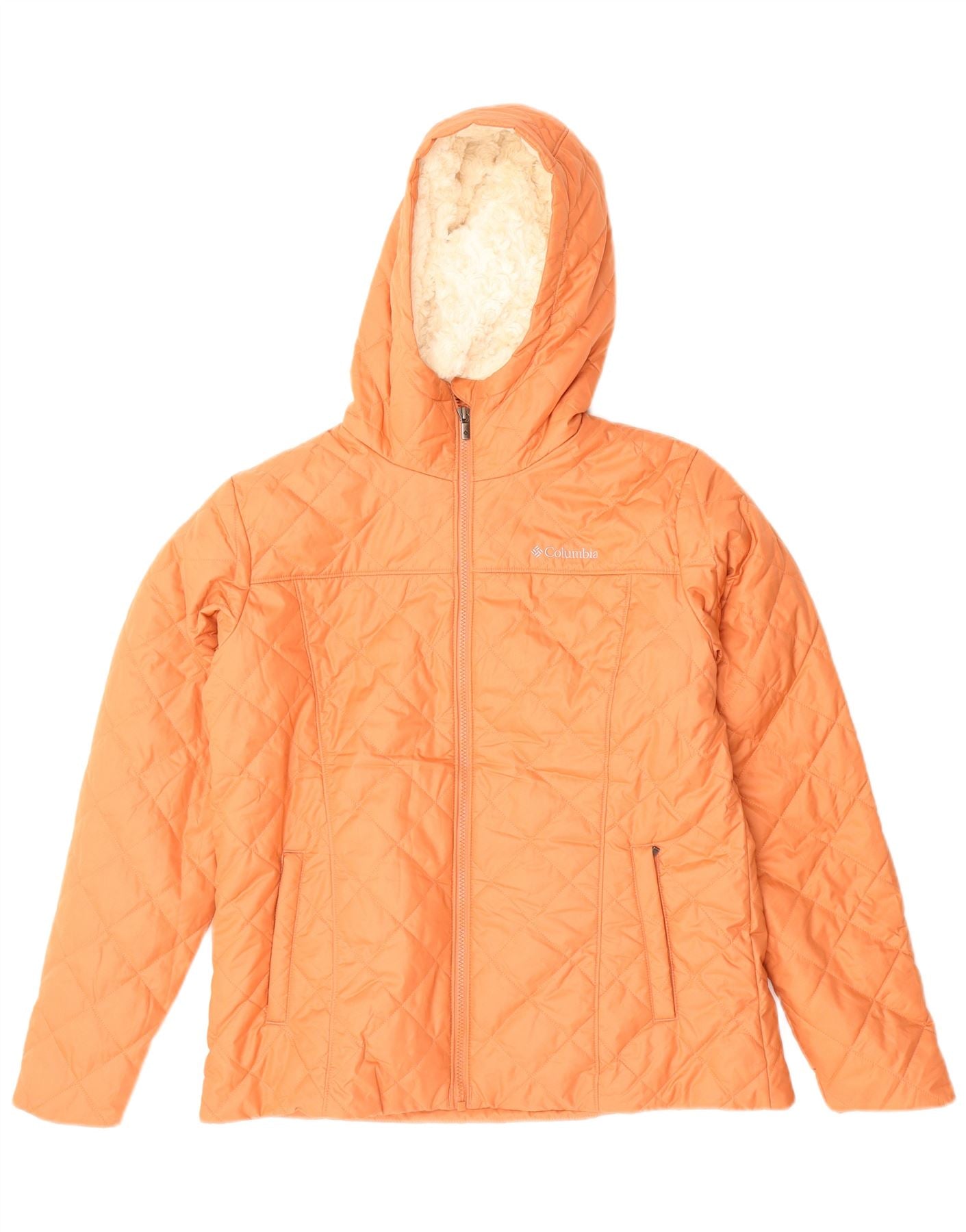 COLUMBIA Womens Sherpa Hooded Quilted Jacket UK 16 Large Orange Polyester