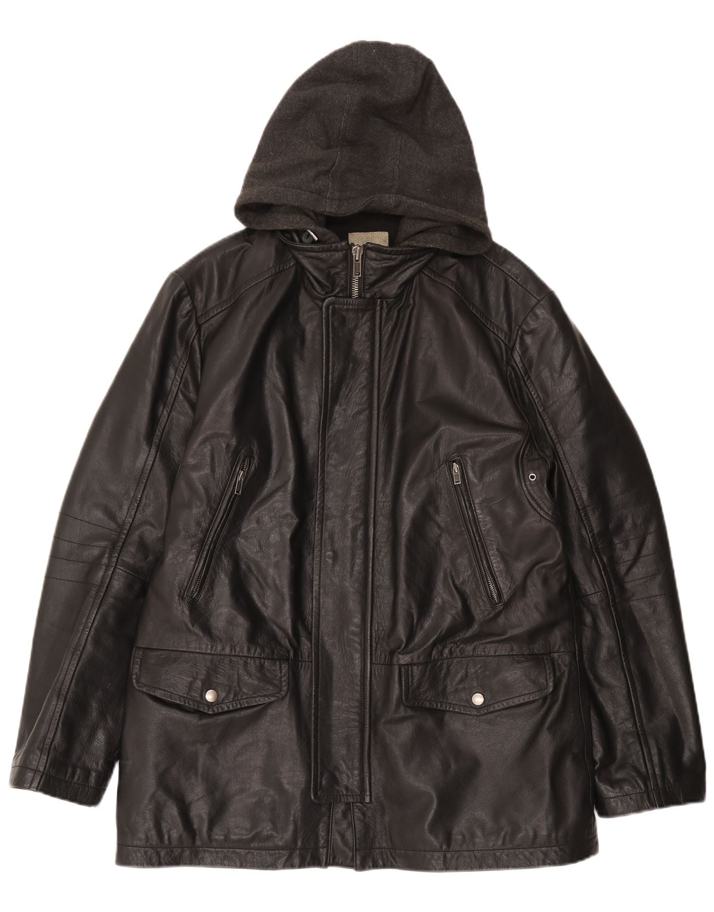 Ανδρικό δερμάτινο μπουφάν CONBIPEL με κουκούλα IT 52 XL Μαύρο Δερμάτινο