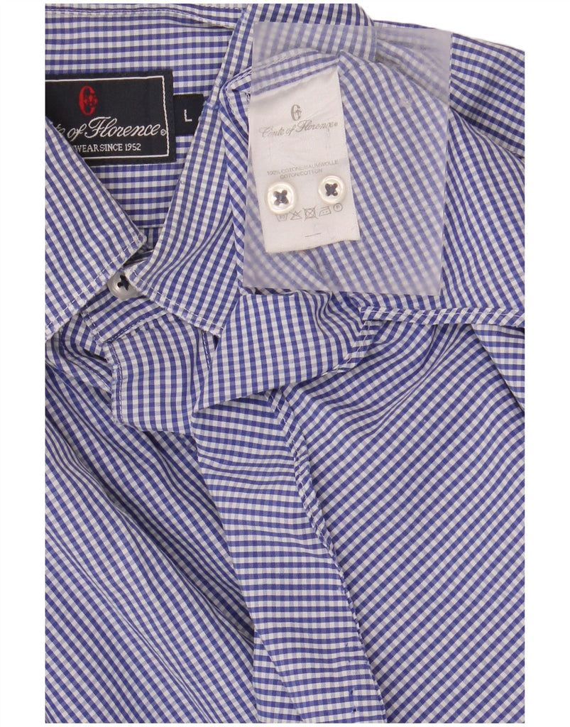 CONTE OF FLORENCE Ανδρικό πουκάμισο μεγάλο μπλε βαμβακερό Gingham