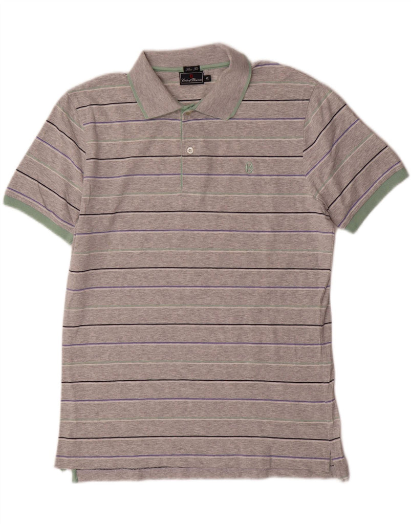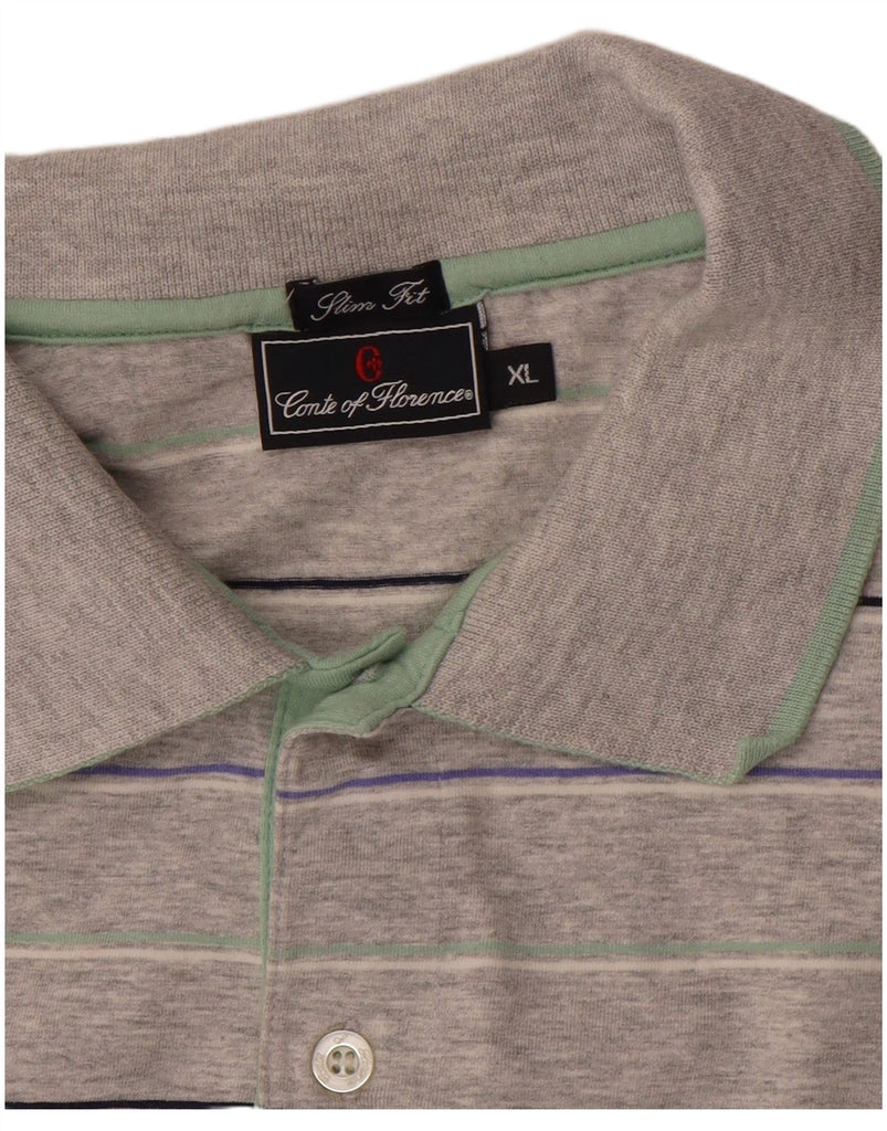 CONTE OF FLORENCE Mens Slim Fit Polo Shirt XL Grey Striped