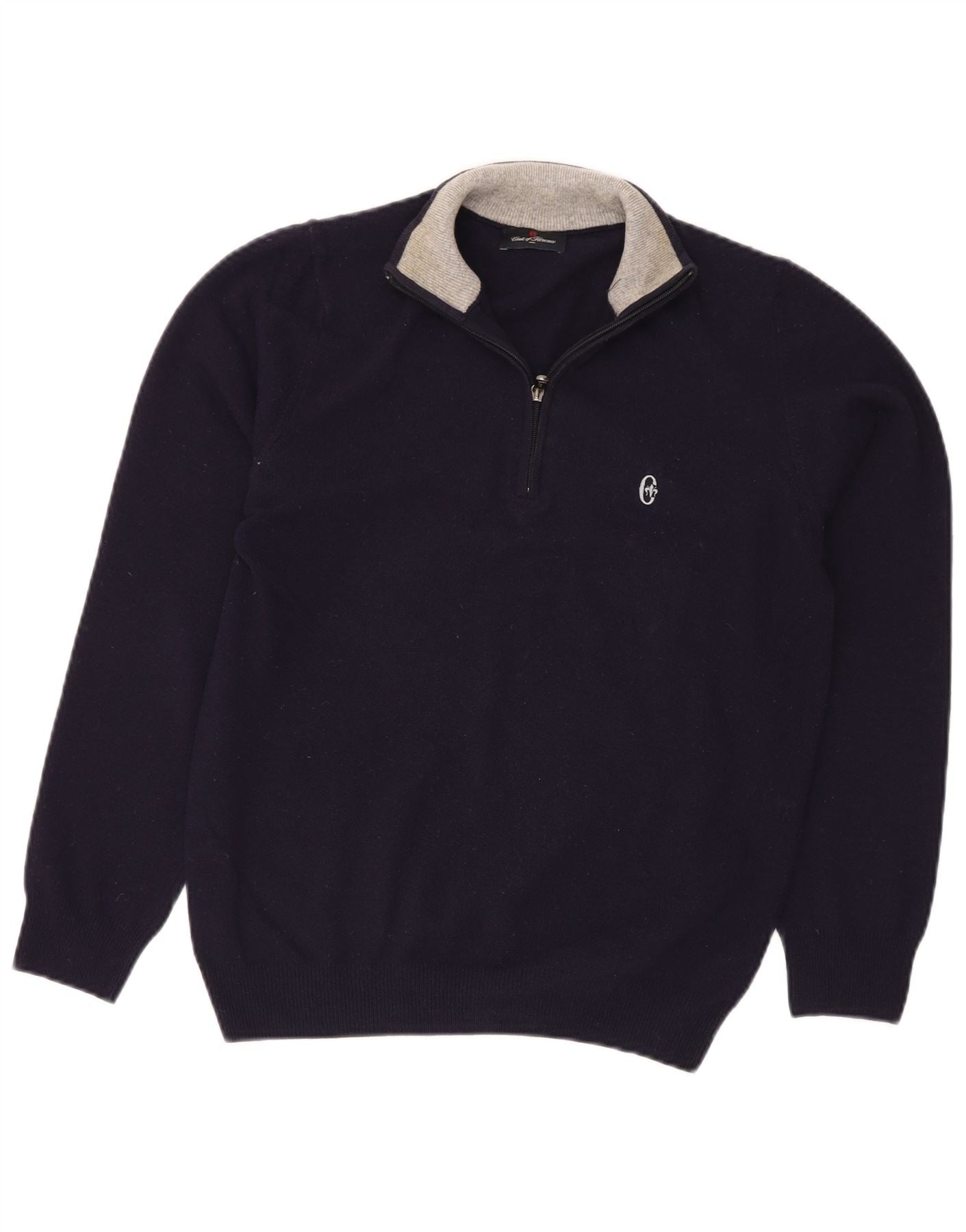 CONTE OF FLORENCE Ανδρικό πουλόβερ πουλόβερ με φερμουάρ Μικρό μπλε μάλλινο