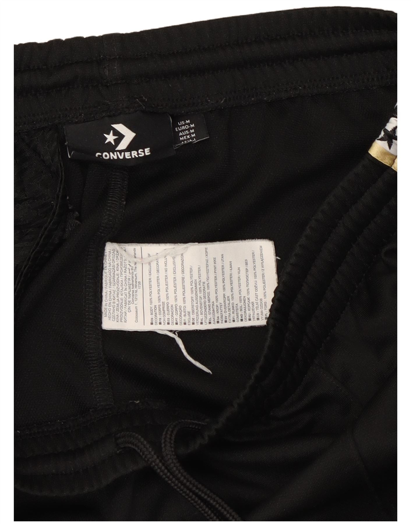 - Περιγραφή AI: Αυτά τα ανδρικά παντελόνια αθλητικής φόρμας Converse είναι φτιαγμένα από λεία μαύρη φανέλα από πολυεστέρα. Διαθέτουν άνετη ελαστική μέση με κλείσιμο με κορδόνι περίσφιξης. Η κανονική εφαρμογή λεπταίνει στους αστραγάλους με μανσέτες, προσφέροντας μια μοντέρνα σιλουέτα για jogger. Λευκή και χρυσή ταινία με το λογότυπο Star Chevron διατρέχει κάθε πλευρά, προσθέτοντας μια χαρακτηριστική γραφική λεπτομέρεια. Οι πρακτικές τσέπες βελτιώνουν τη λειτουργικότητα.