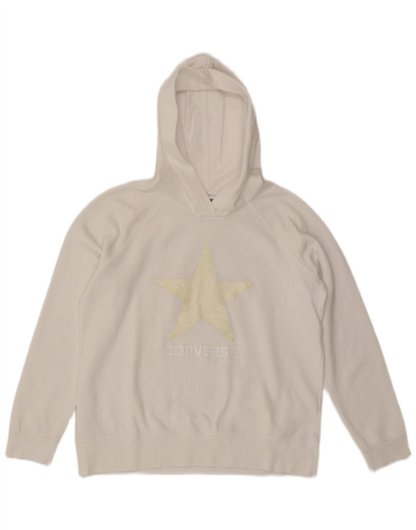 Γυναικεία κουκούλα CONVERSE γραφικό άλμα UK 14 Μεσαίο λευκό βαμβακερό
