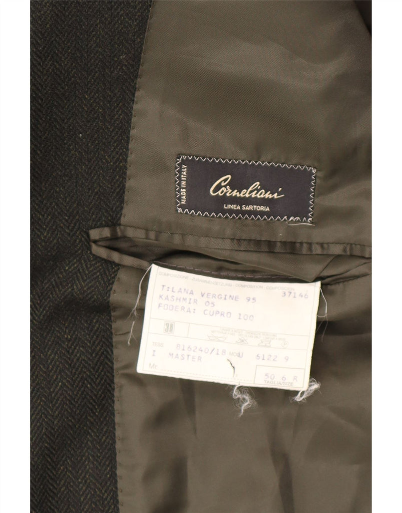 CORNELIANI Ανδρικό σακάκι με 3 κουμπιά μπλέιζερ IT 50 Μεγάλο πράσινο μαλλί ψαροκόκαλο