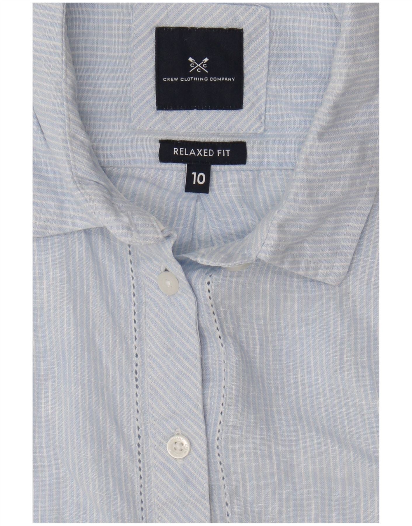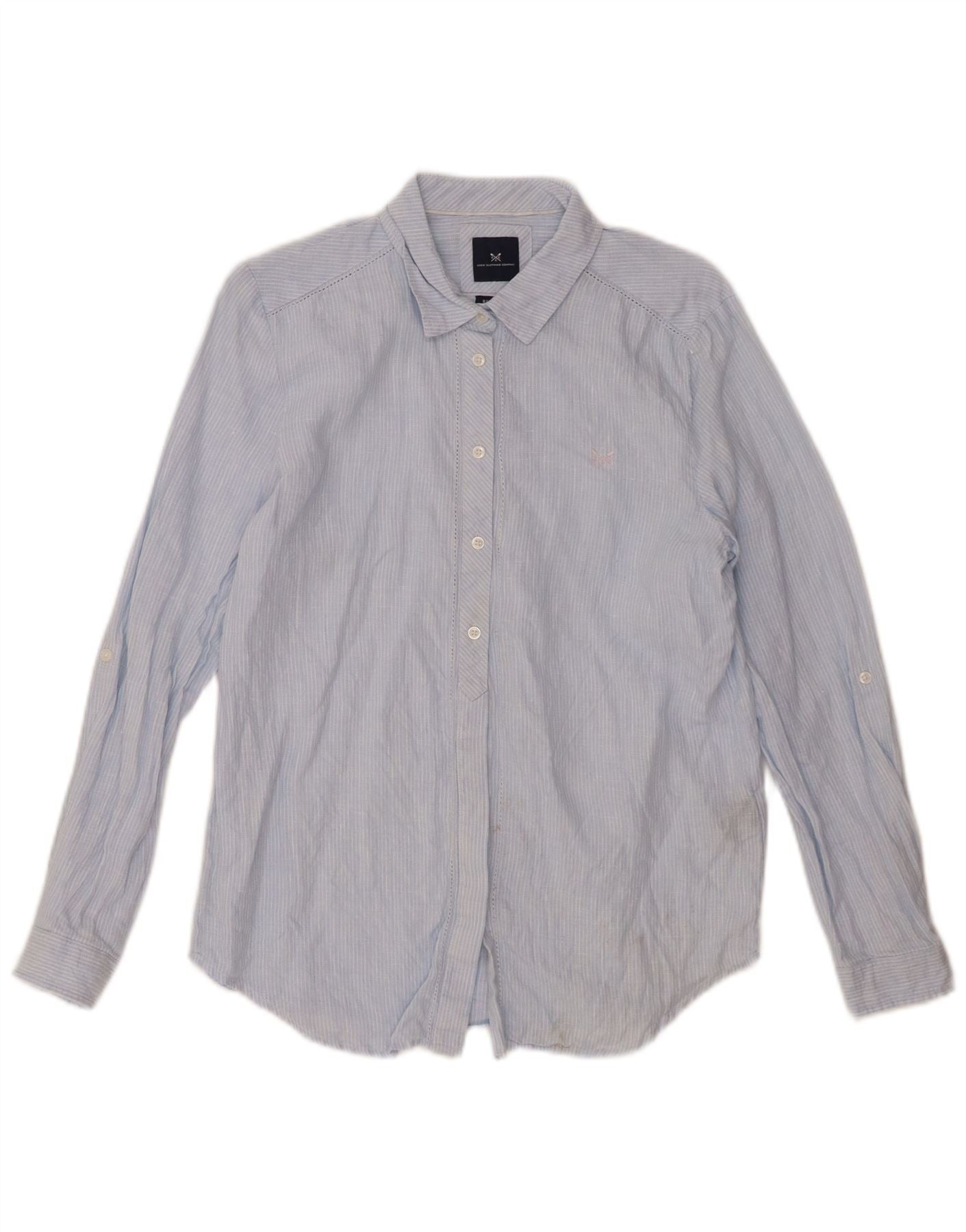 CREW CLOTHING Womens Relaxed Fit Shirt UK 10 Small Blue Pinstripe Linen