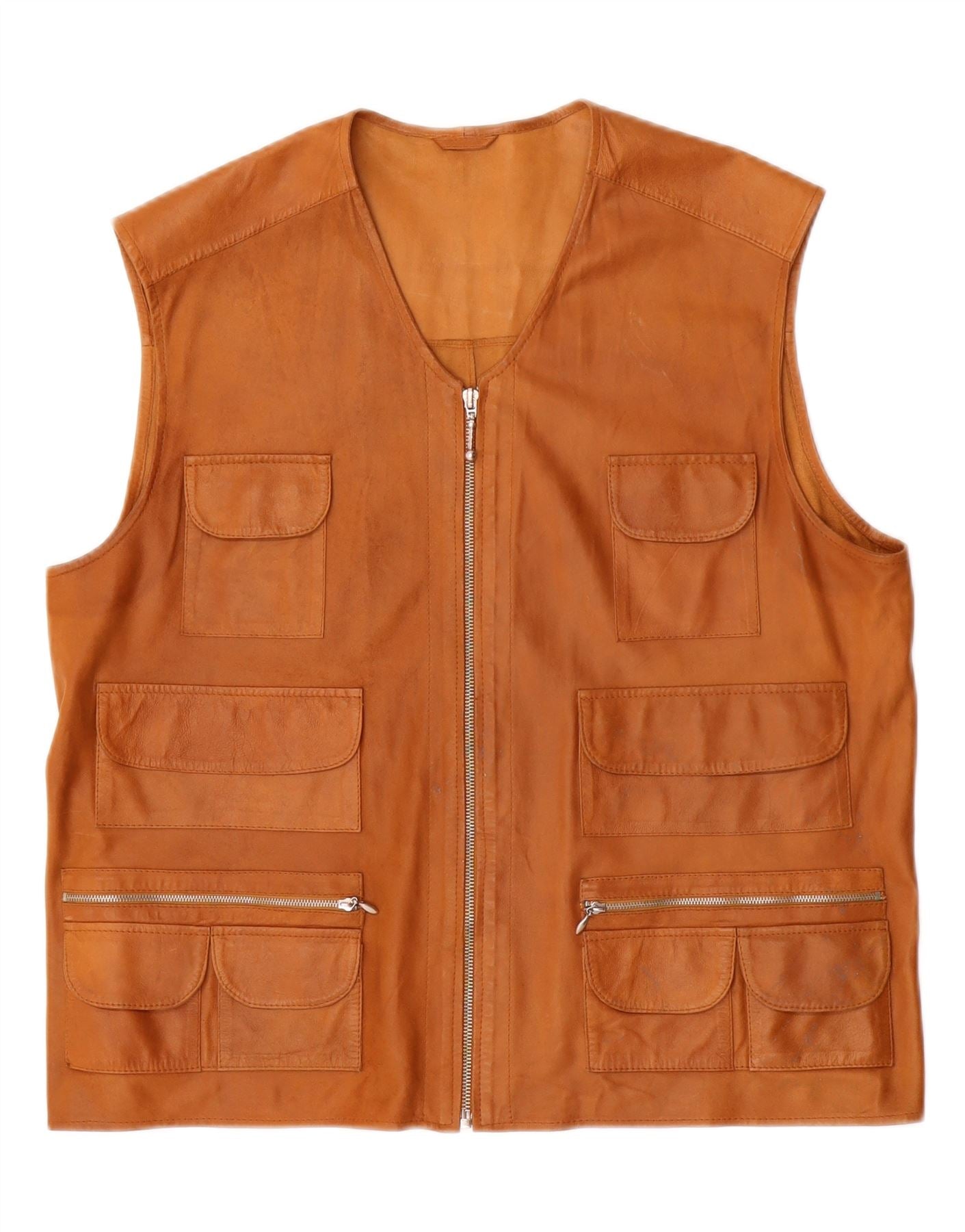CRISTIANO DI THIENE Ανδρικό Δερμάτινο Βοηθητικό Gilet IT 50 Μεγάλο Καφέ
