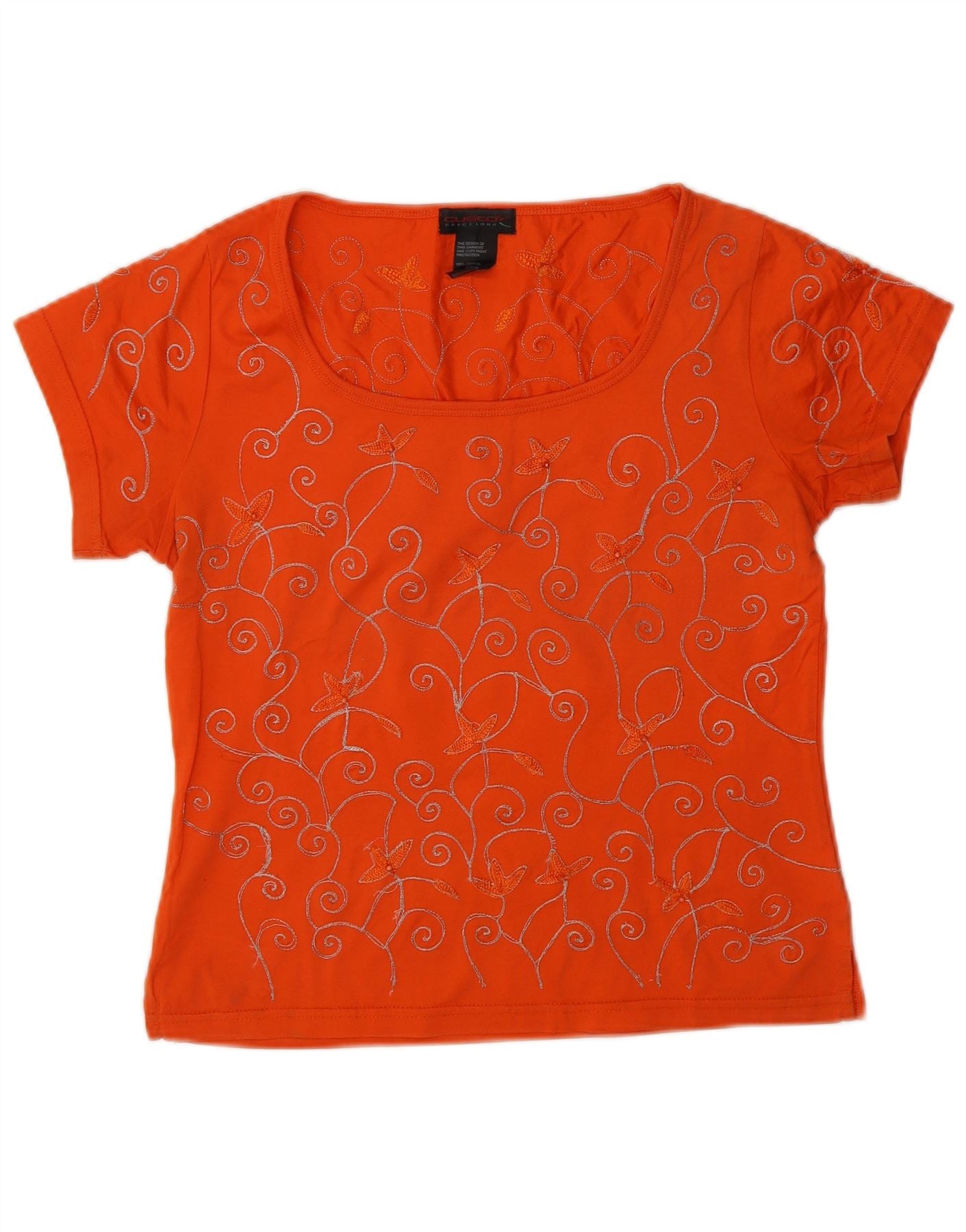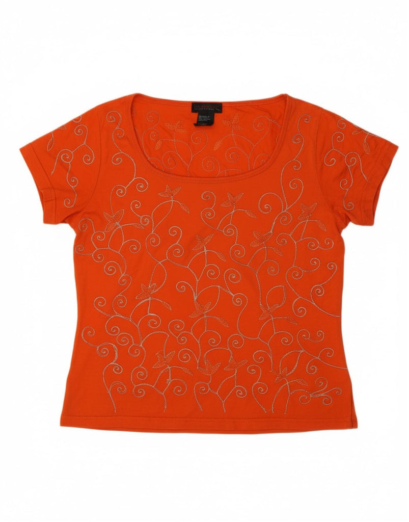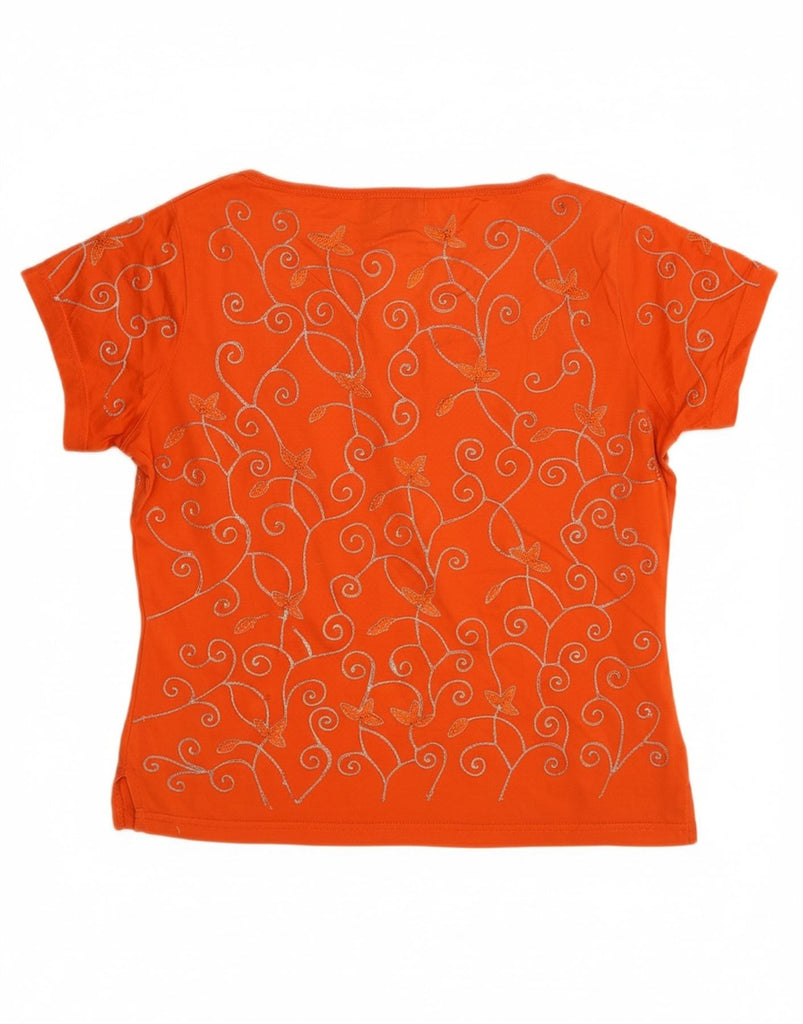 CUSTO BARCELONA Womens Crop Blouse Top US 2 XS Orange Paisley Cotton
