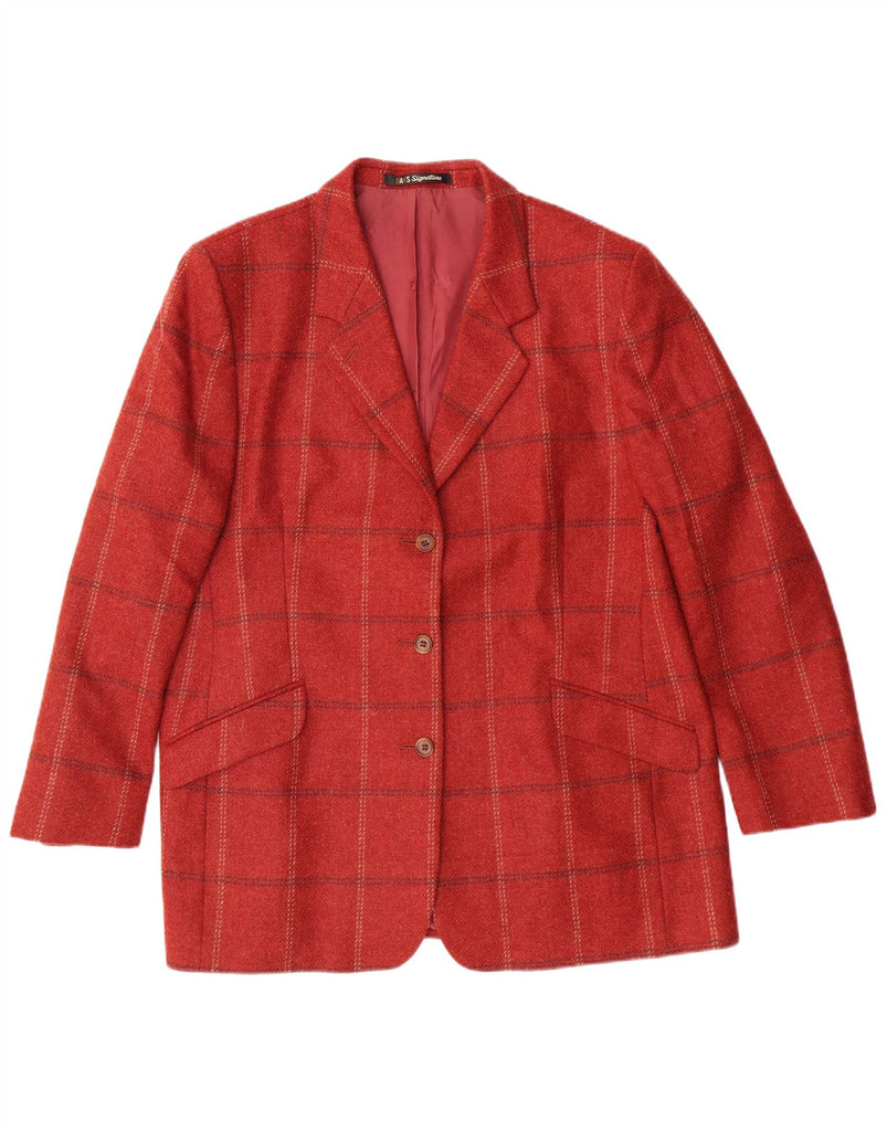 DAKS Womens 3 Button Blazer Jacket UK 18 XL Burgundy Check New Wool