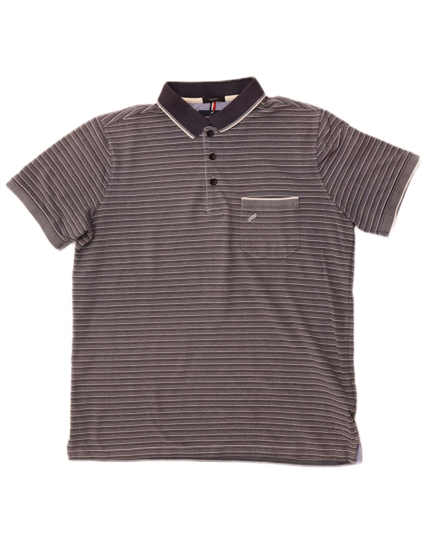 DANIEL HECHTER Ανδρικό πουκάμισο πόλο Easy Care μεγάλο γκρι βαμβακερό ριγέ