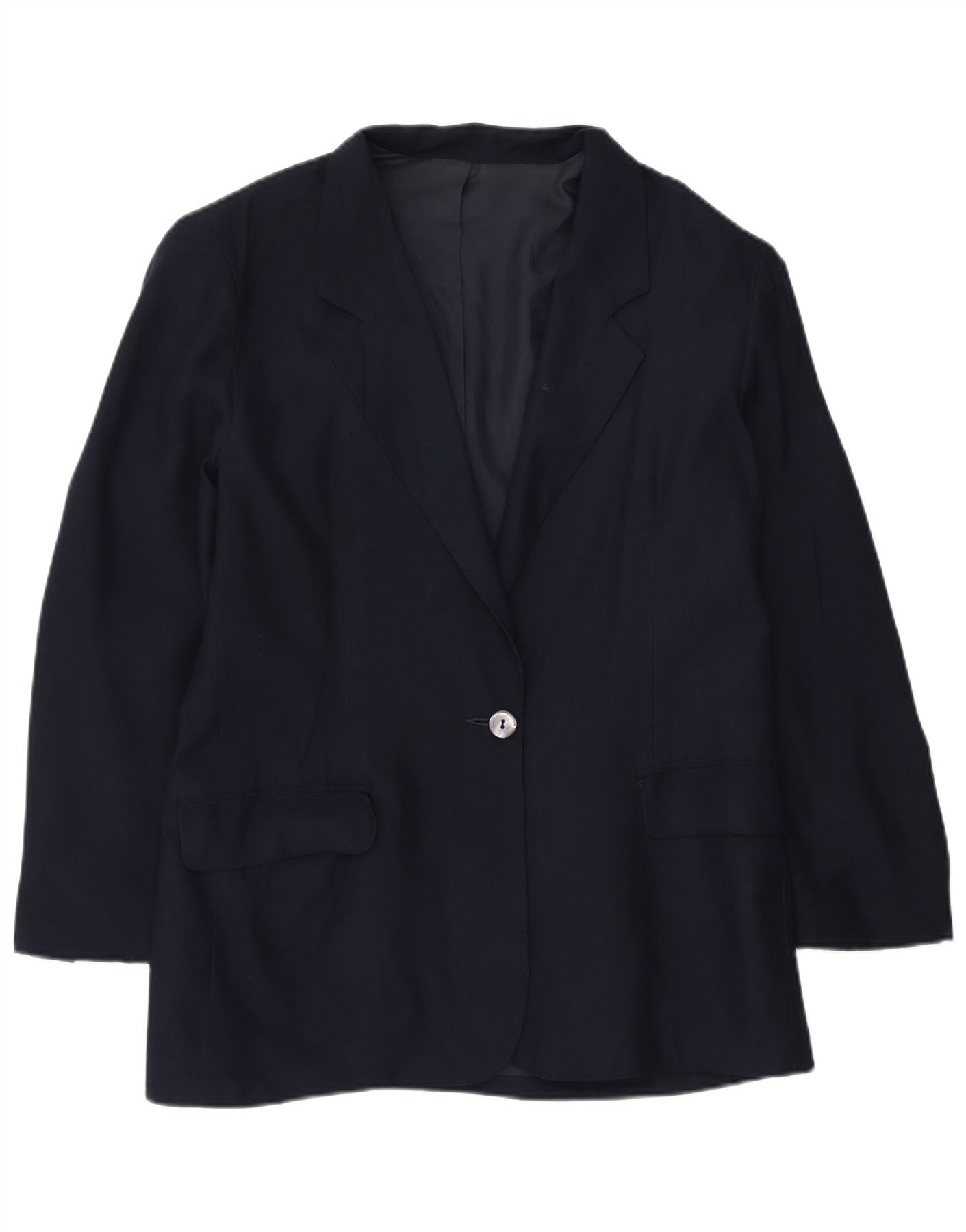 DANIEL HECHTER Womens 1 Button Blazer Jacket UK 14 Large Navy Blue Silk