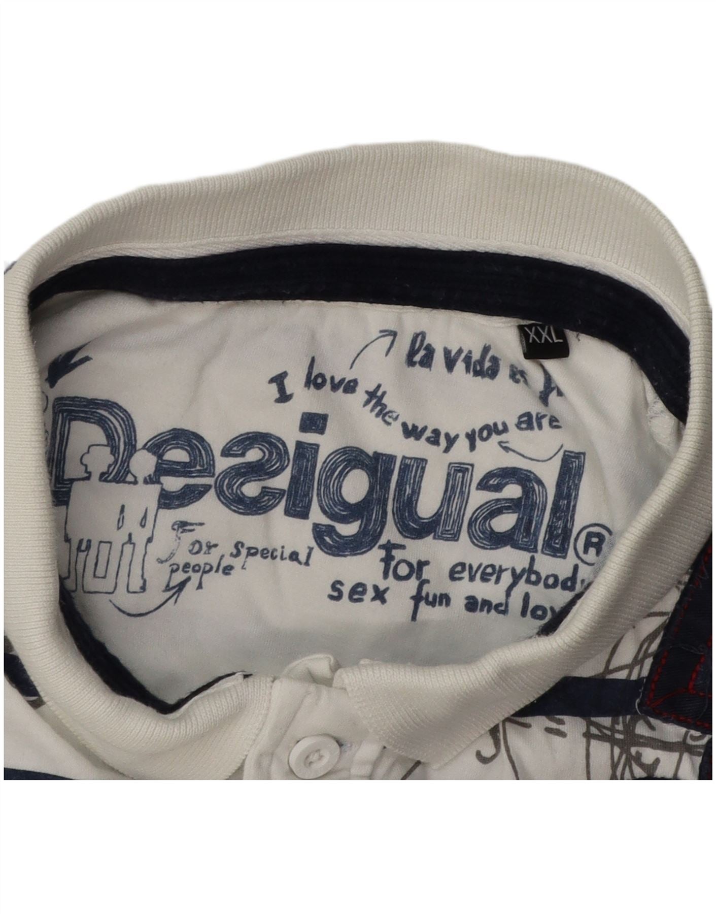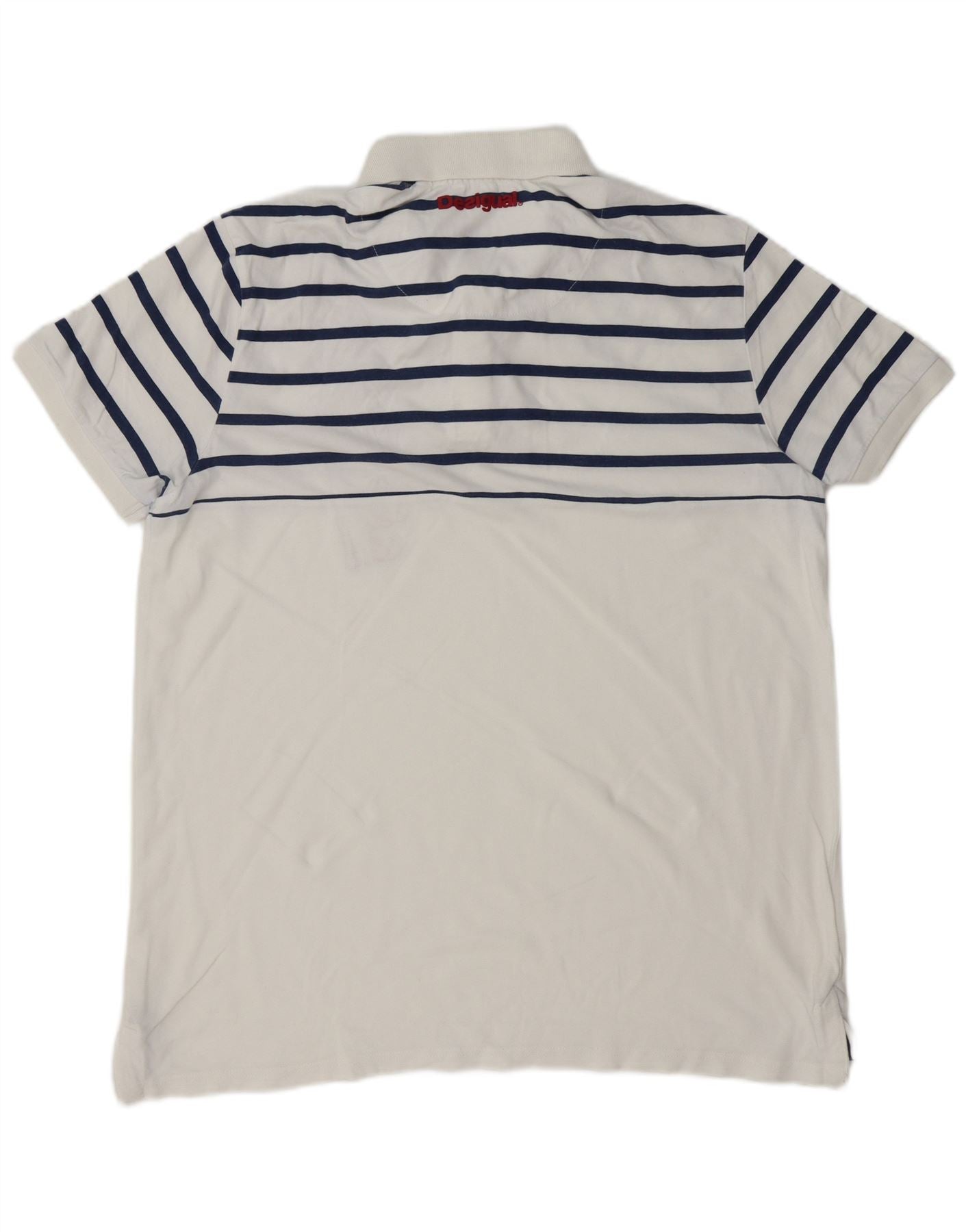 DESIGUAL Ανδρικό γραφικό μπλουζάκι πόλο 2XL Λευκό ριγέ
