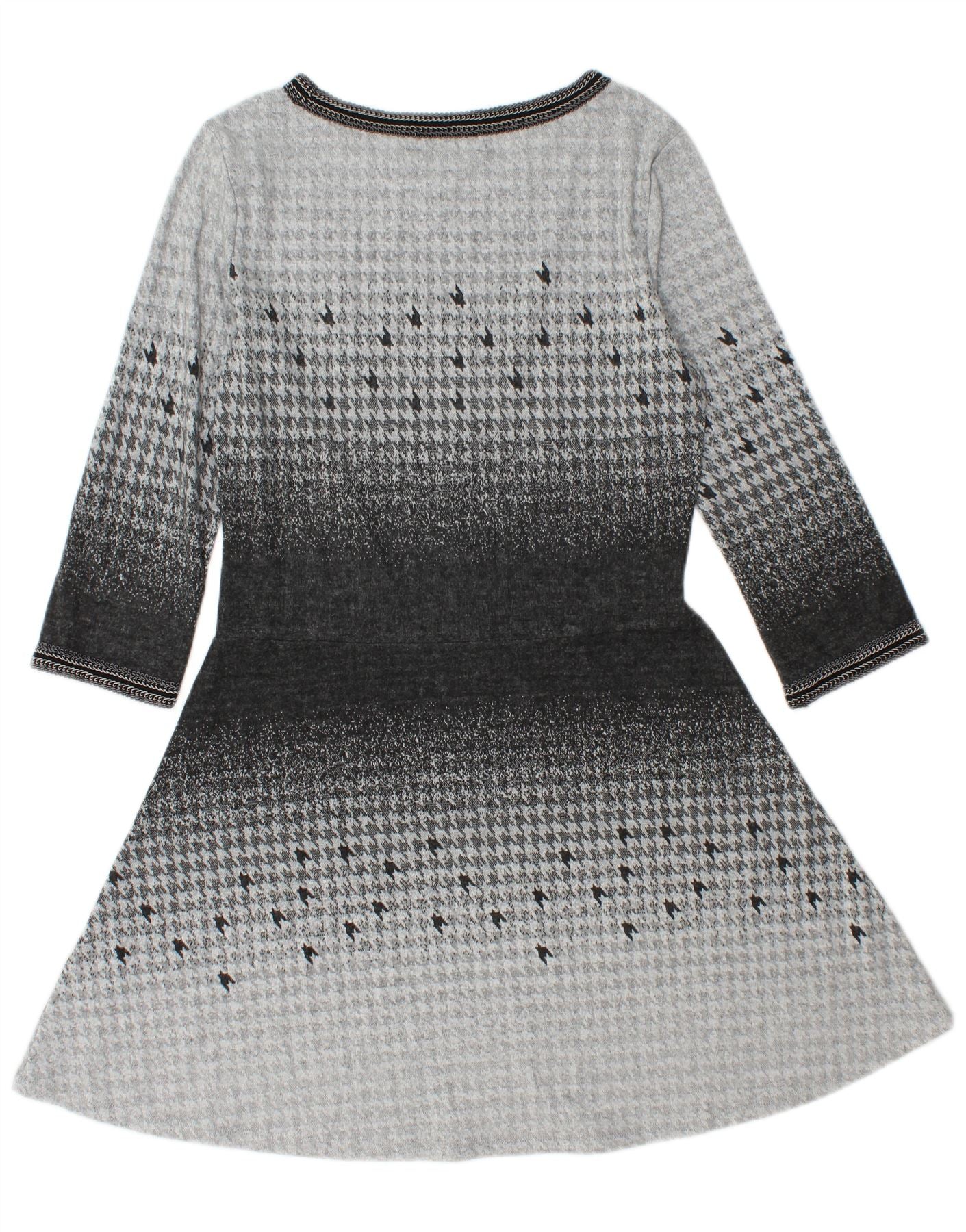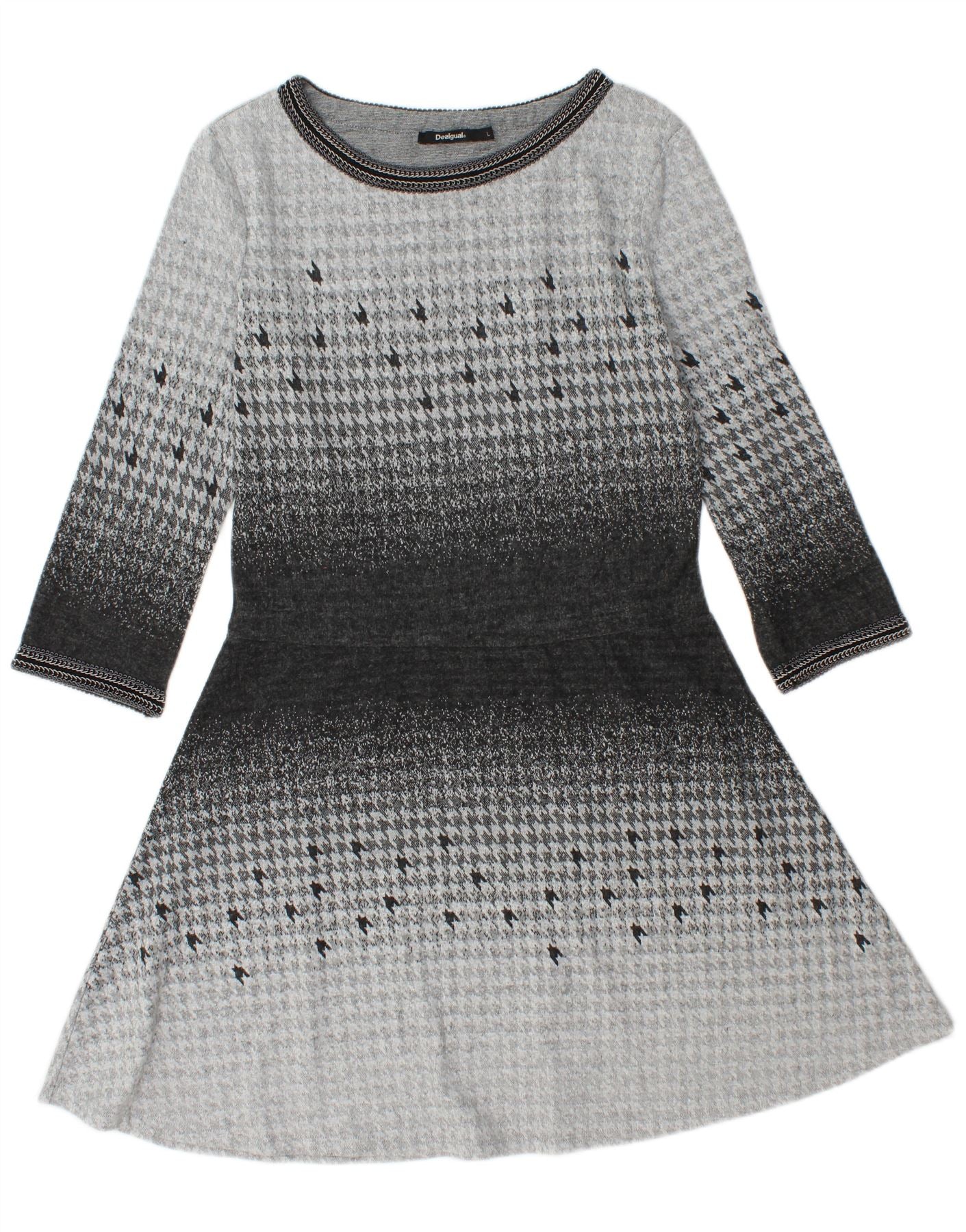 DESIGUAL Γυναικείο φόρεμα 3/4 με μανίκια A-Line UK 14 Large Grey Houndstooth