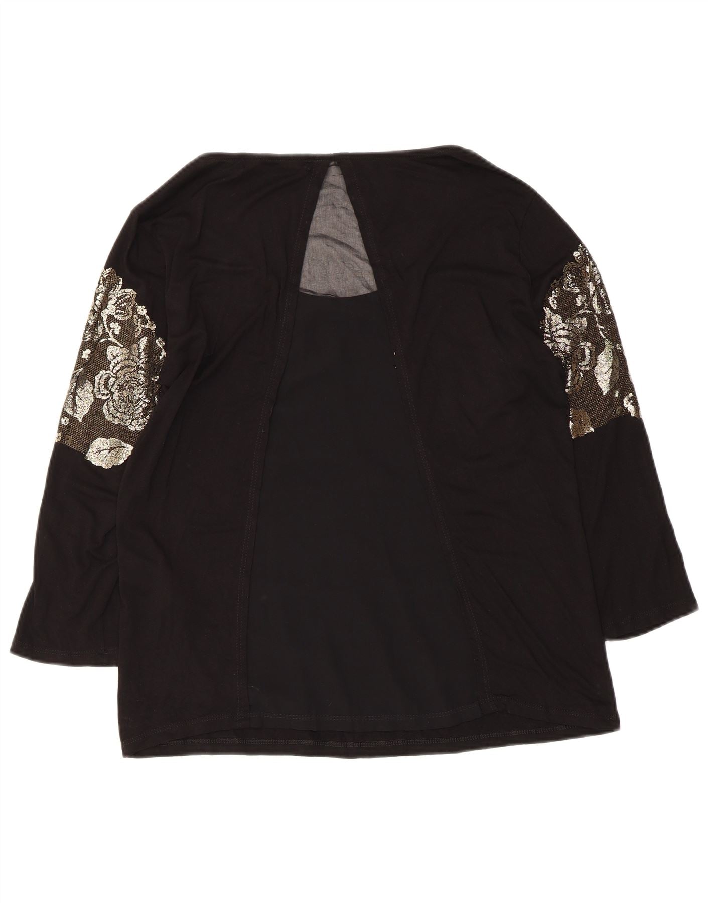 DESIGUAL Womens 3/4 Sleeve Blouse Top UK 18 XL Black Floral Viscose