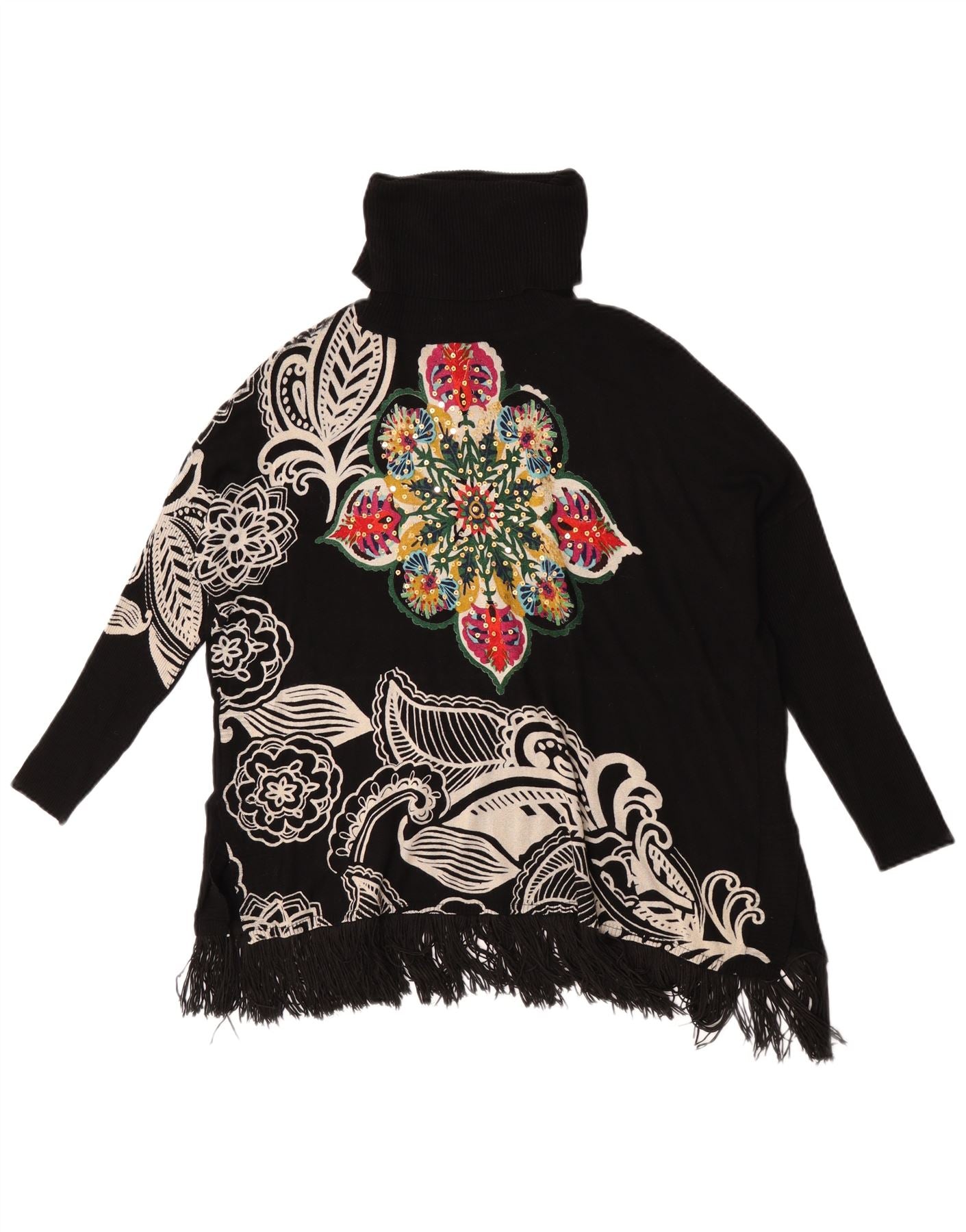 Desigual γυναικείο πουλόβερ 3/4 με ρολό λαιμόκοψη UK 14 μεσαίο μαύρο