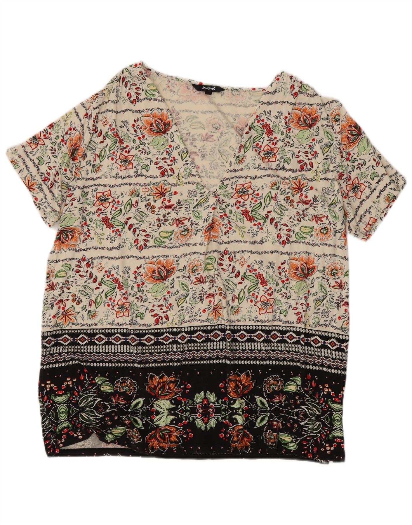 DESIGUAL Γυναικεία Μπλούζα Τοπ UK 20 2XL Off White Floral Viscose