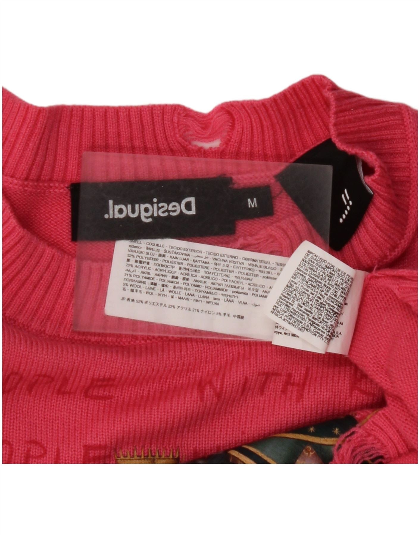 Γυναικείο πουλόβερ DESIGUAL Crop Graphic Crew Neck Jumper UK 14 Medium Pink