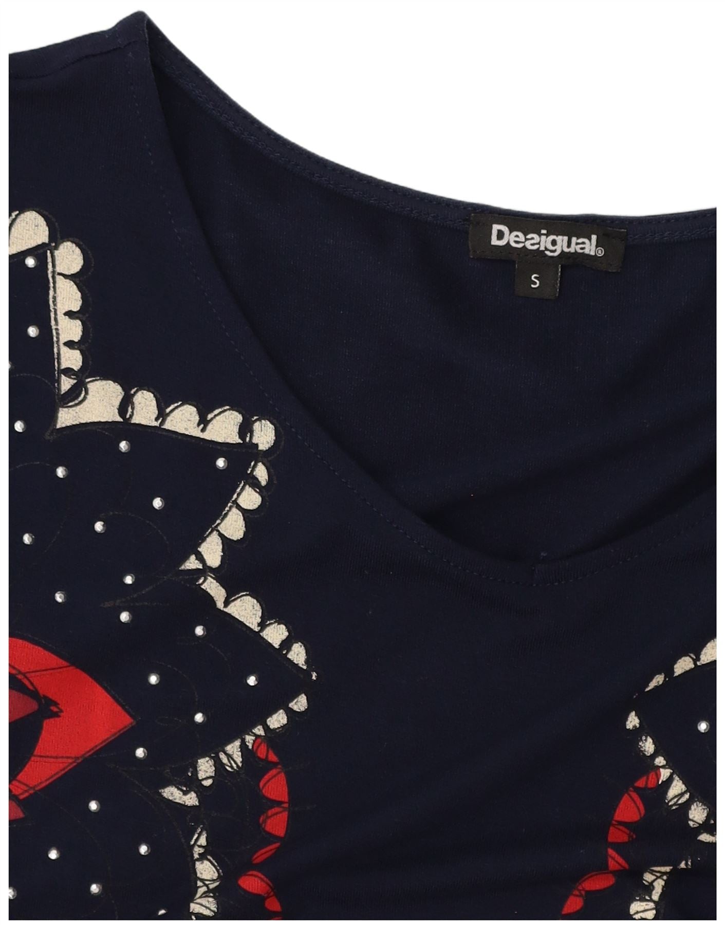 DESIGUAL Γυναικείο γραφικό φόρεμα A-Line UK 10 Small Navy Blue Floral