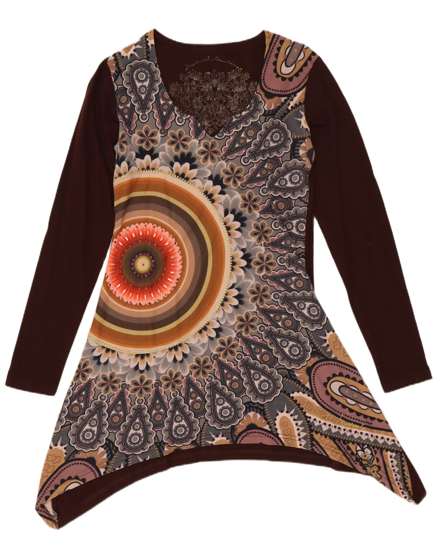 DESIGUAL Γυναικείο γραφικό ασύμμετρο τουνίκ φόρεμα UK 10 Μικρό καφέ φλοράλ