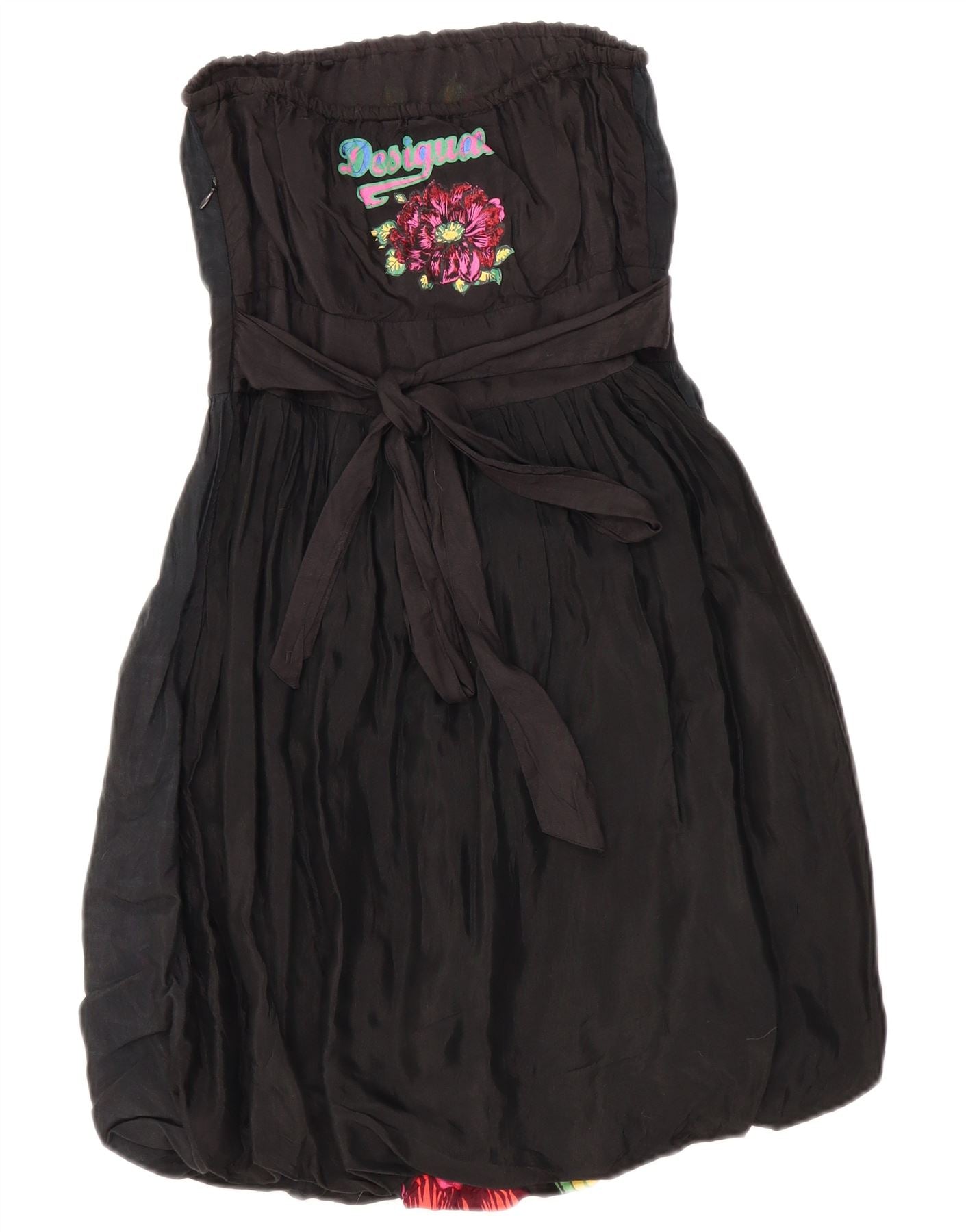 DESIGUAL Γυναικείο γραφικό στράπλες φόρεμα φούσκα EU 38 Μεσαίο μαύρο φλοράλ