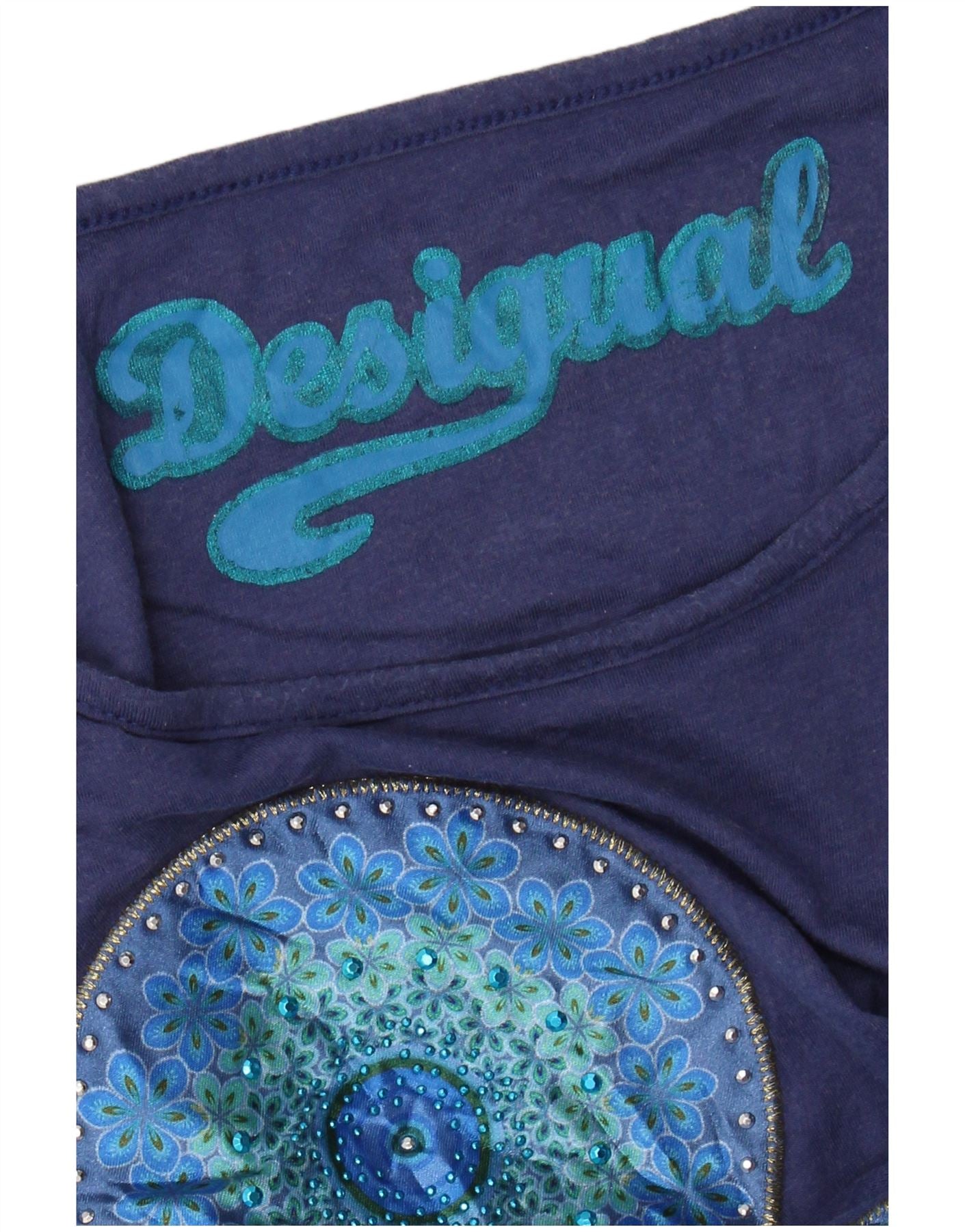 DESIGUAL Γυναικείο γραφικό μπλουζάκι τοπ UK 12 μεσαίου μπλε ναυτικό λουλουδάτο