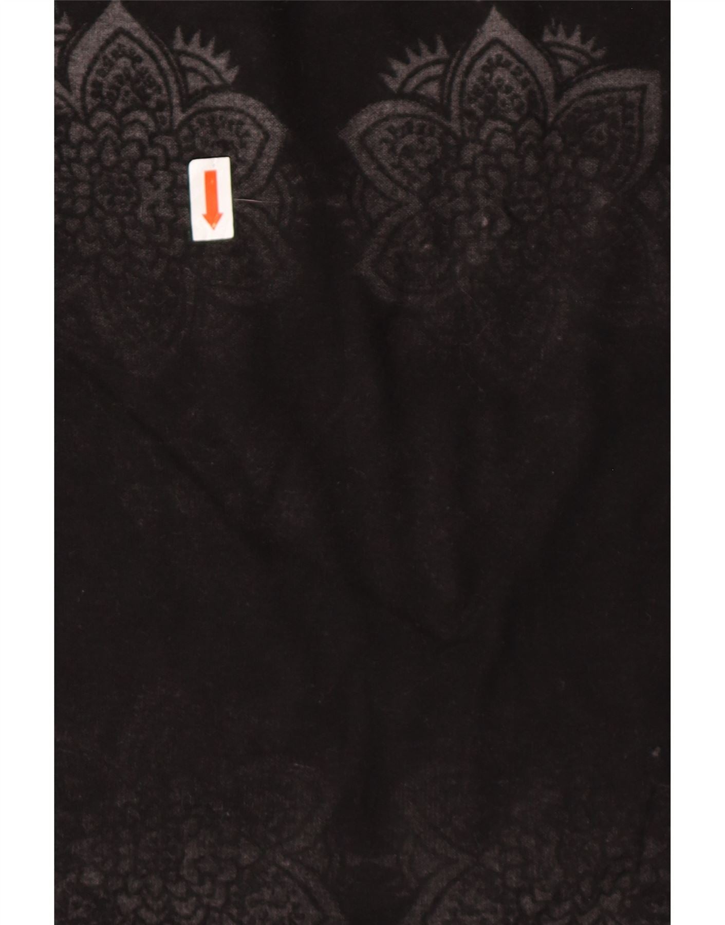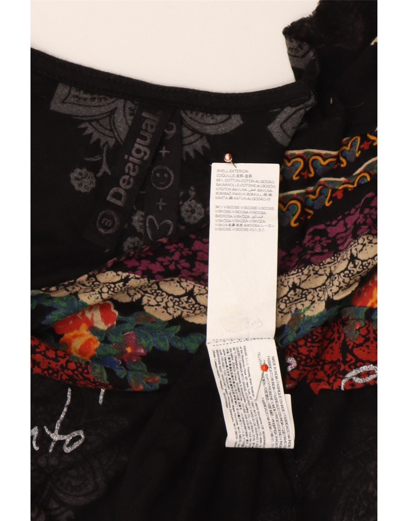 DESIGUAL Womens Graphic Top Long Sleeve UK 12 Medium Black Floral Cotton