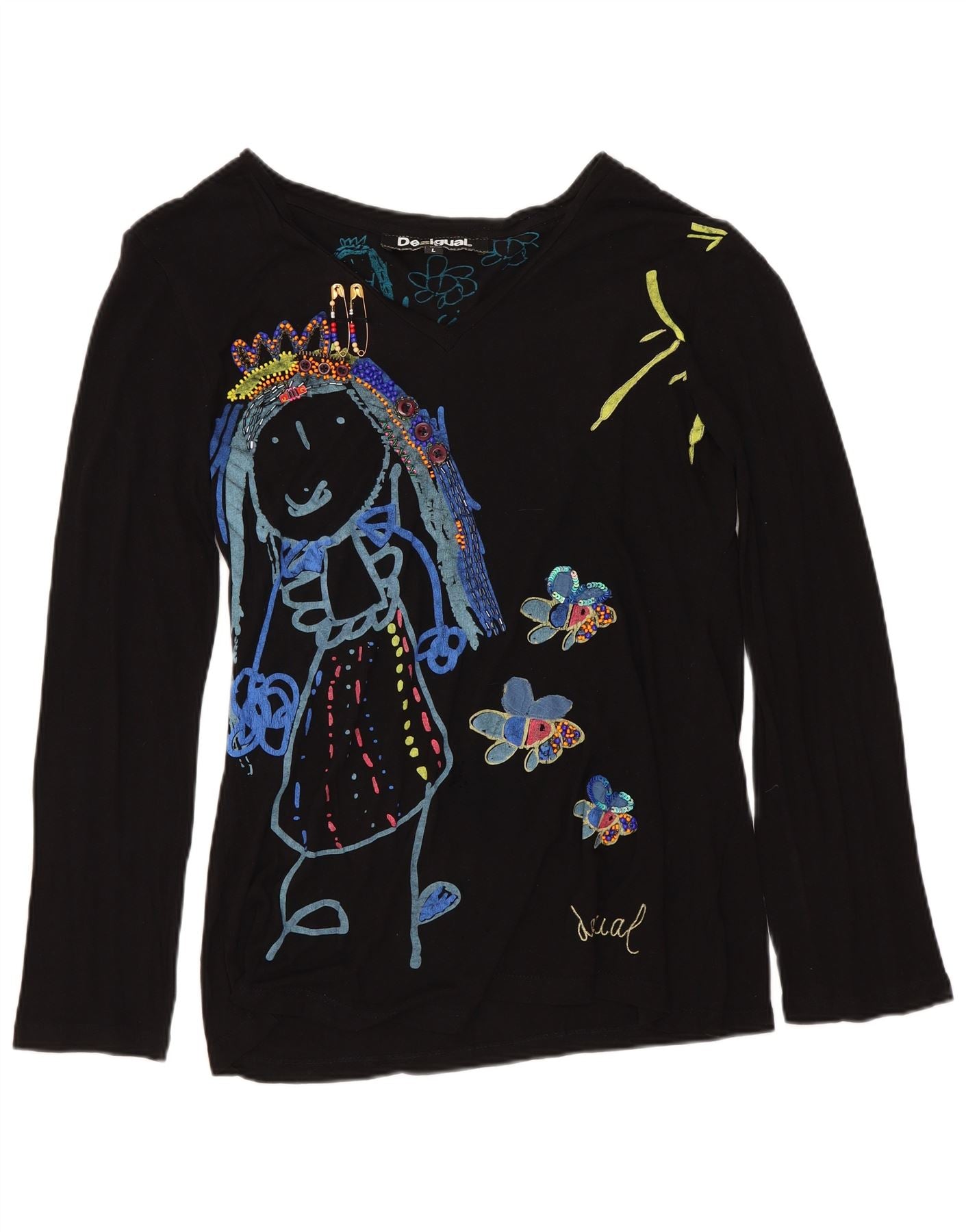DESIGUAL Γυναικείο γραφικό τοπ μακρυμάνικο UK 16 μεγάλο μαύρο