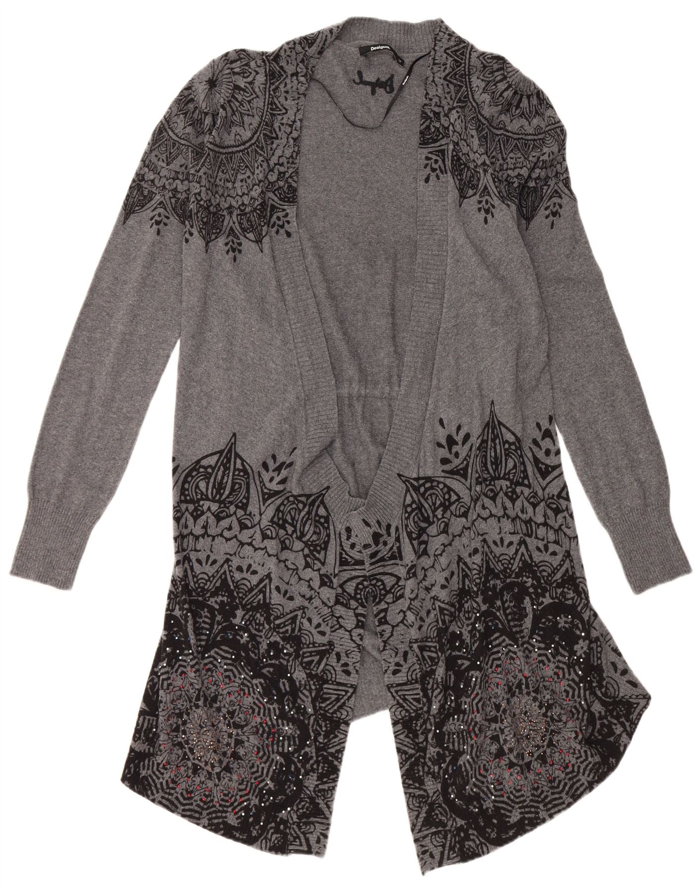 DESIGUAL Γυναικείο Longline ανοιχτό πουλόβερ ζακέτα UK 12 Medium Grey Floral