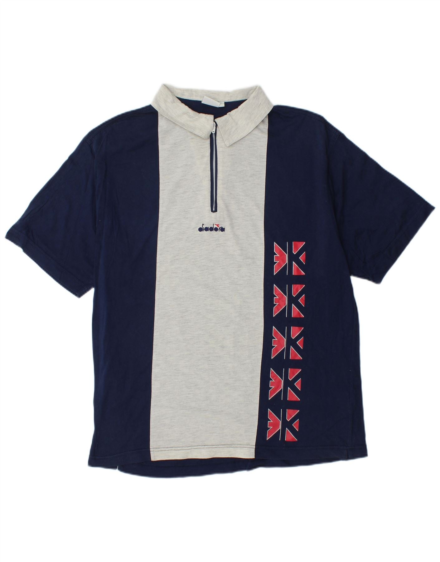 Ανδρικό γραφικό μπλουζάκι πόλο DIADORA Μεγάλο μπλε ναυτικό χρώμα, βαμβακερό