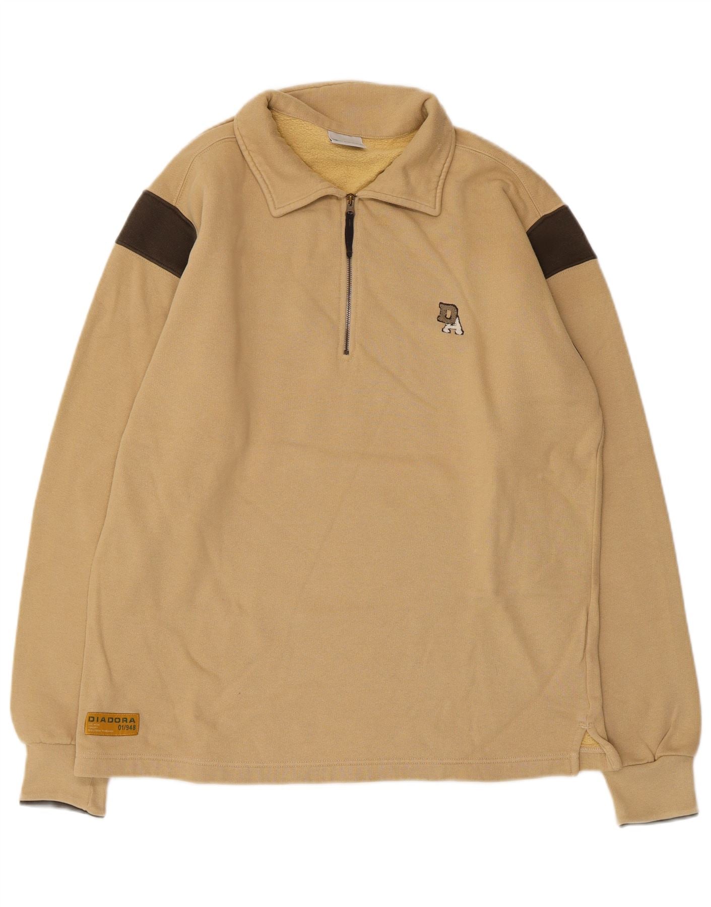 DIADORA Ανδρικό φούτερ πόλο με λαιμόκοψη Jumper Μεγάλο μπεζ χρώμα βαμβακερό