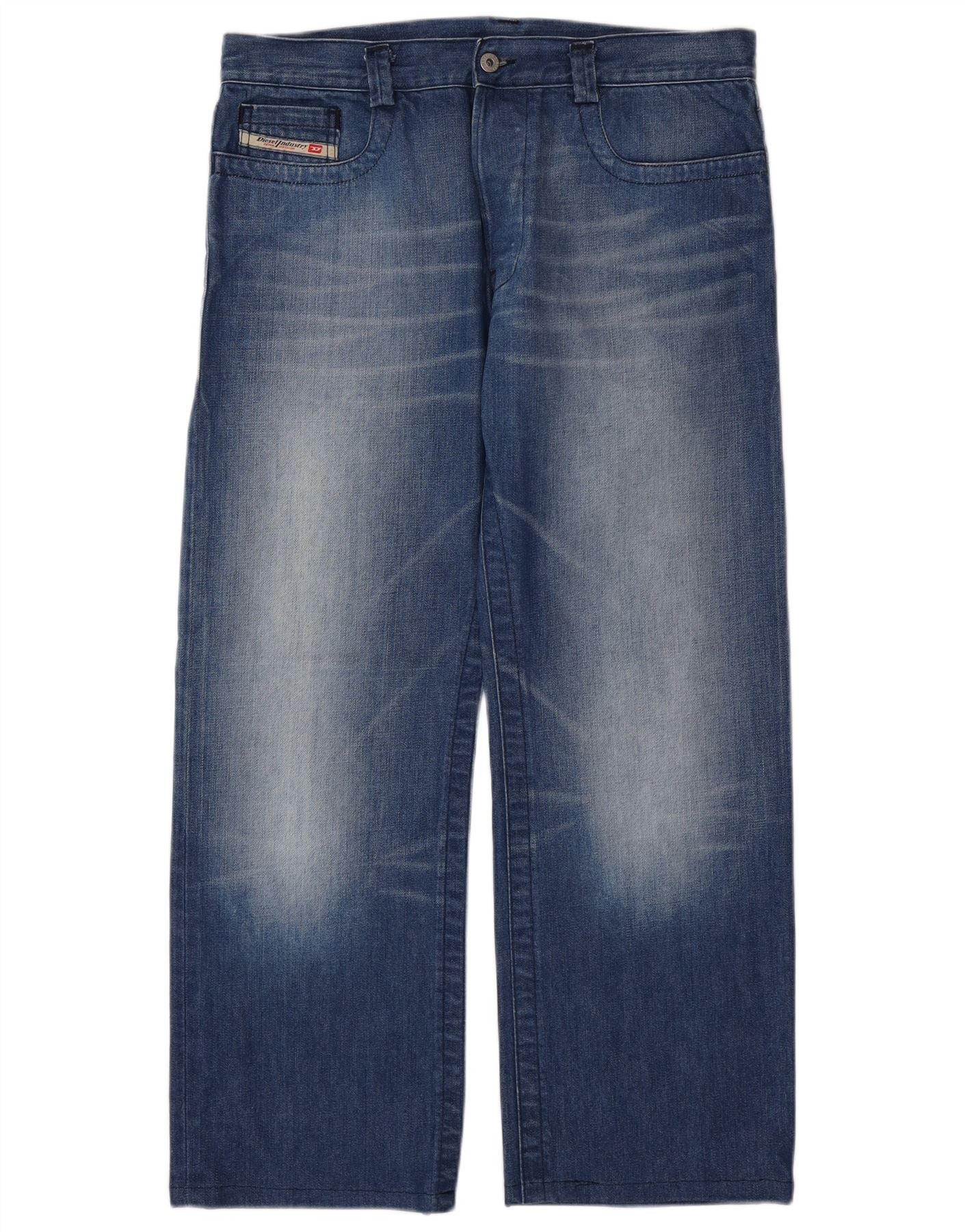 DIESEL Mens Acid Wash Straight Jeans W34 L29 Μπλε βαμβακερό