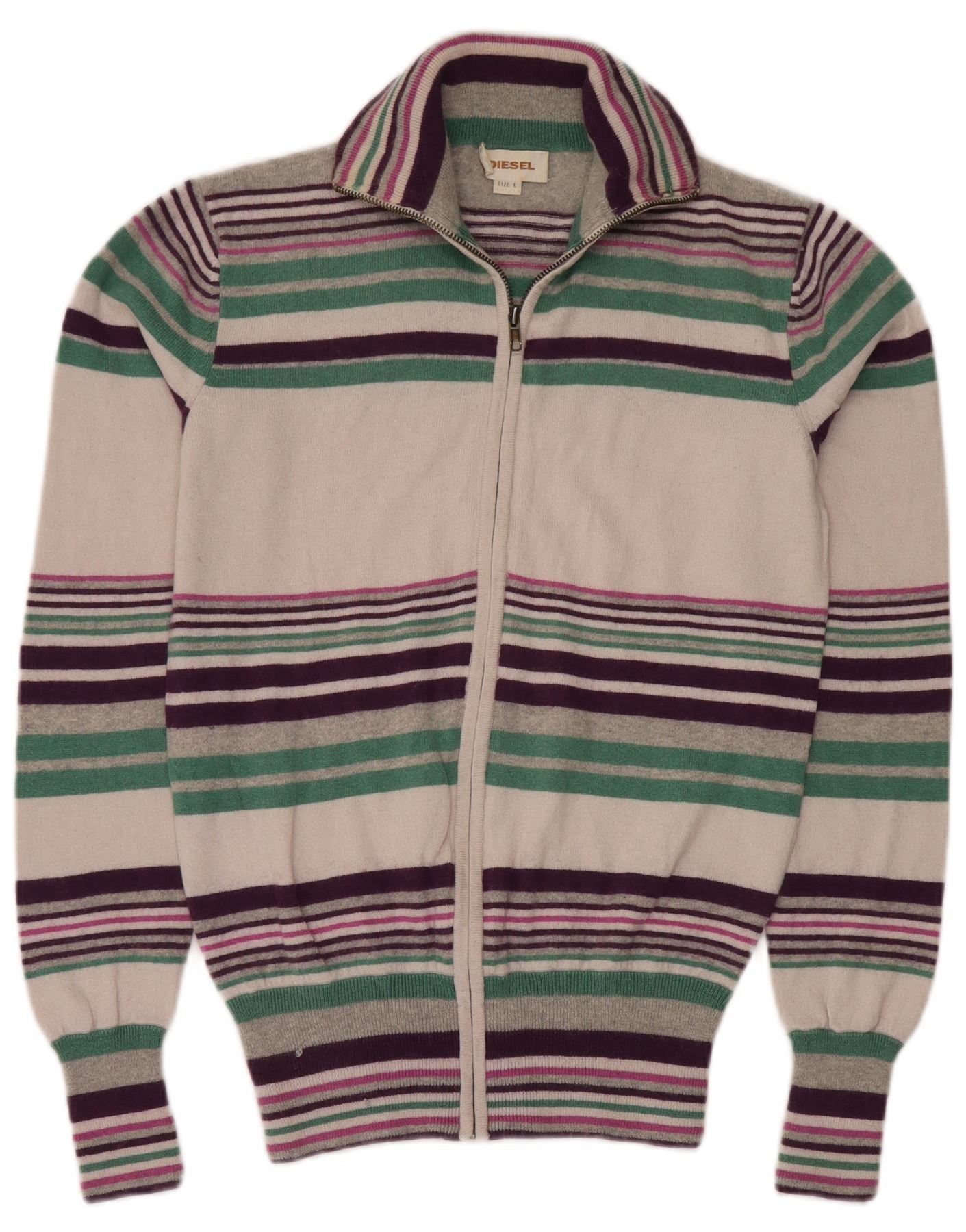 Γυναικείο πουλόβερ DIESEL Cardigan UK 14 Μεγάλο πολύχρωμο βαμβακερό ριγέ