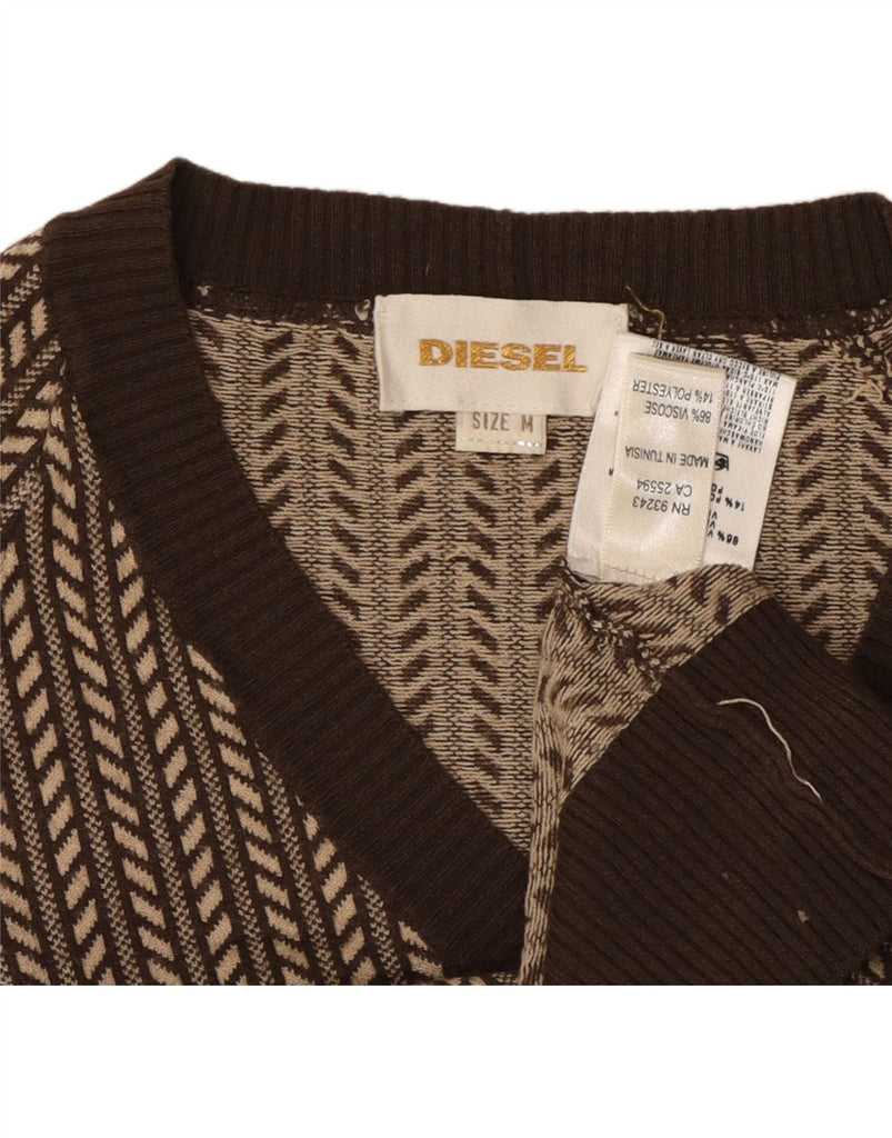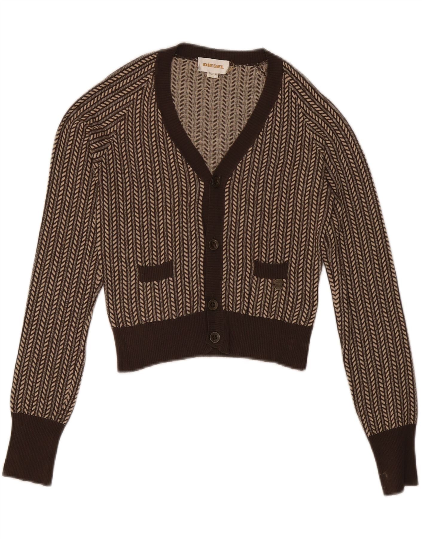 Γυναικείο πουλόβερ DIESEL Crop Cardigan UK 12 μεσαίο καφέ ριγέ βισκόζη