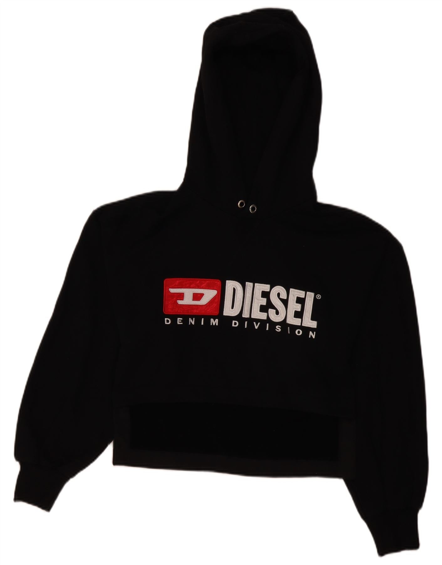 Γυναικεία DIESEL Crop Graphic Hoodie Jumper UK 10 Small Black Cotton