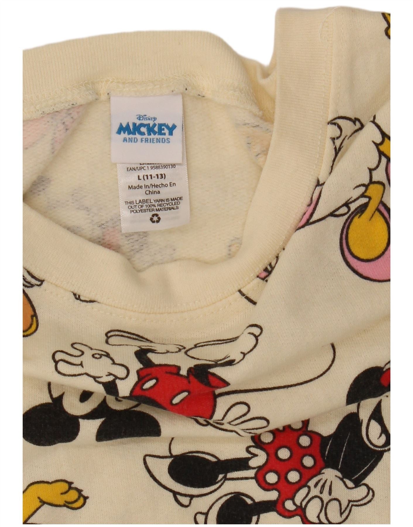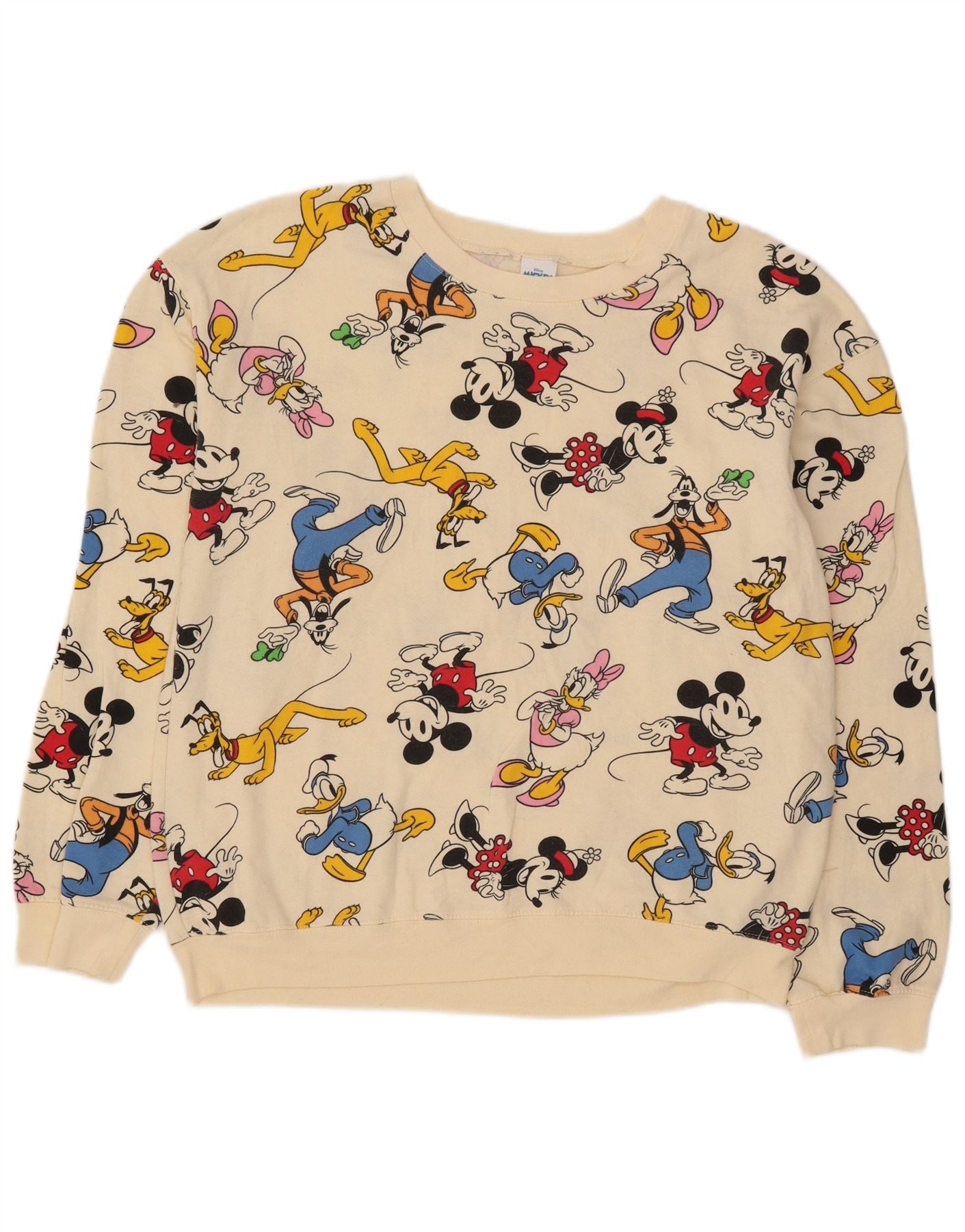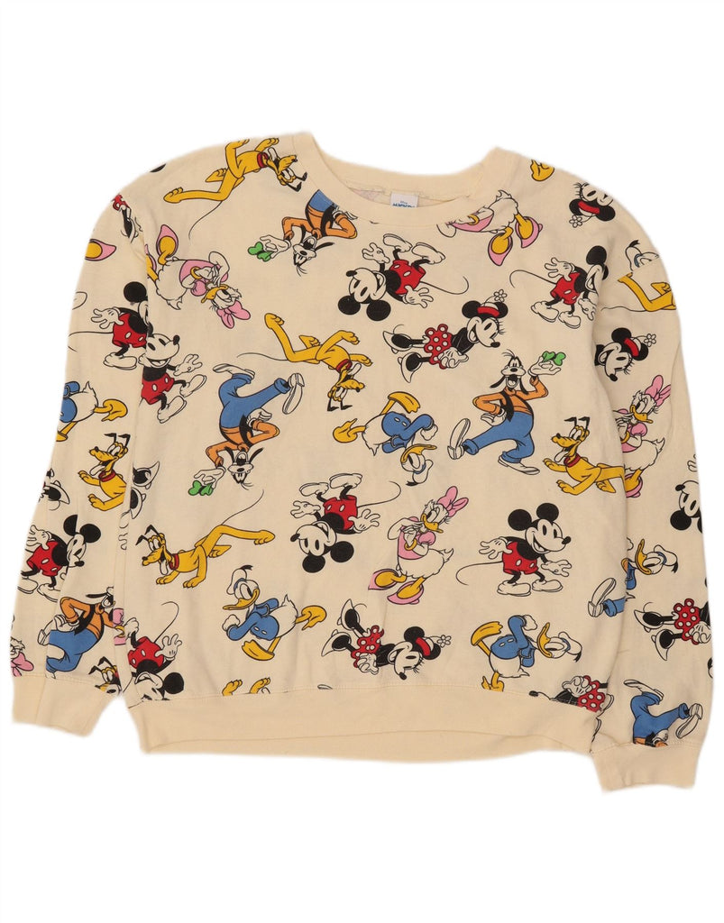 DISNEY Boys Graphic Sweatshirt Jumper 11-12 Years Large Off White Cotton