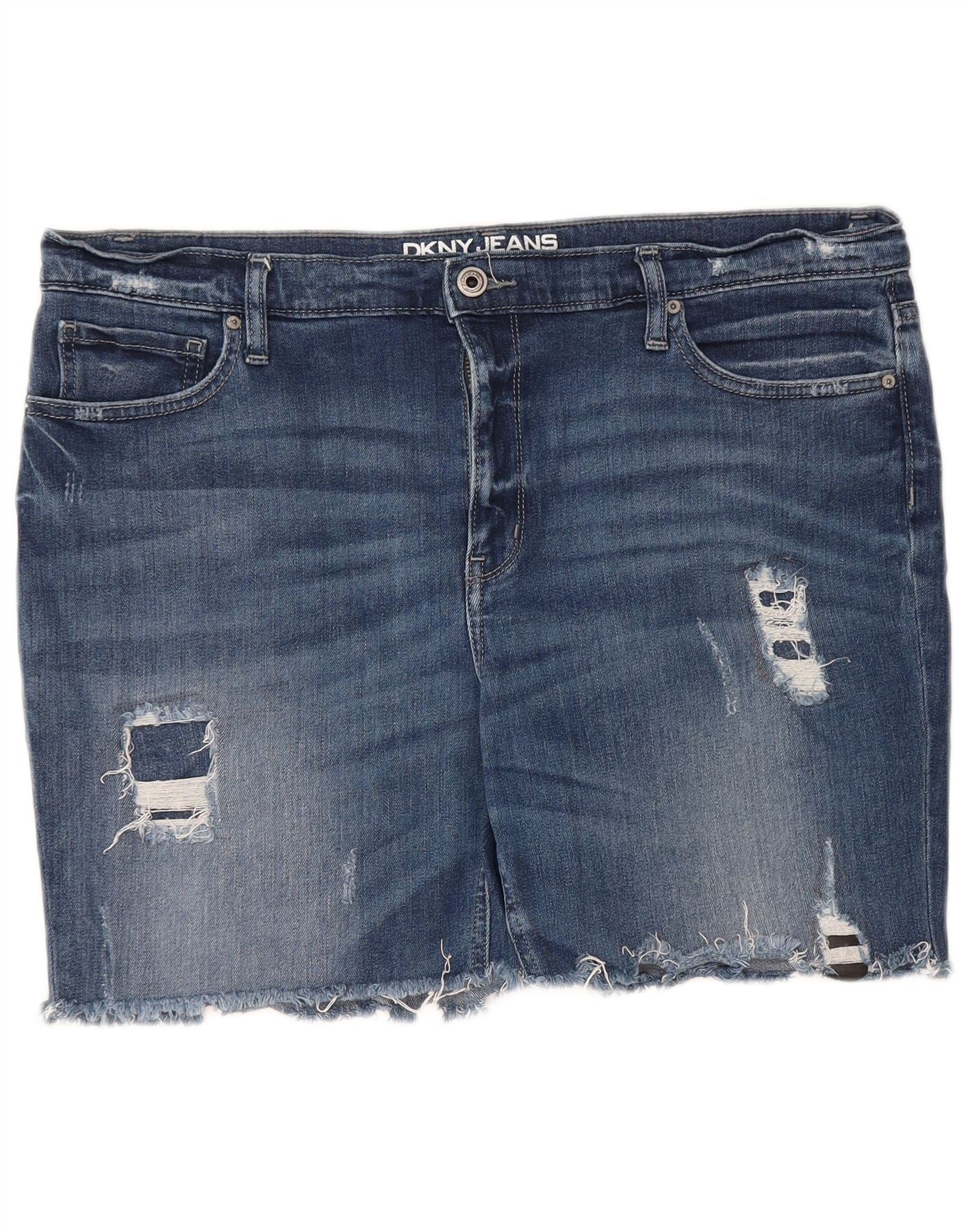 DKNY Womens Boyfriend Distressed Denim Shorts US 14 XL W34 Blue Cotton