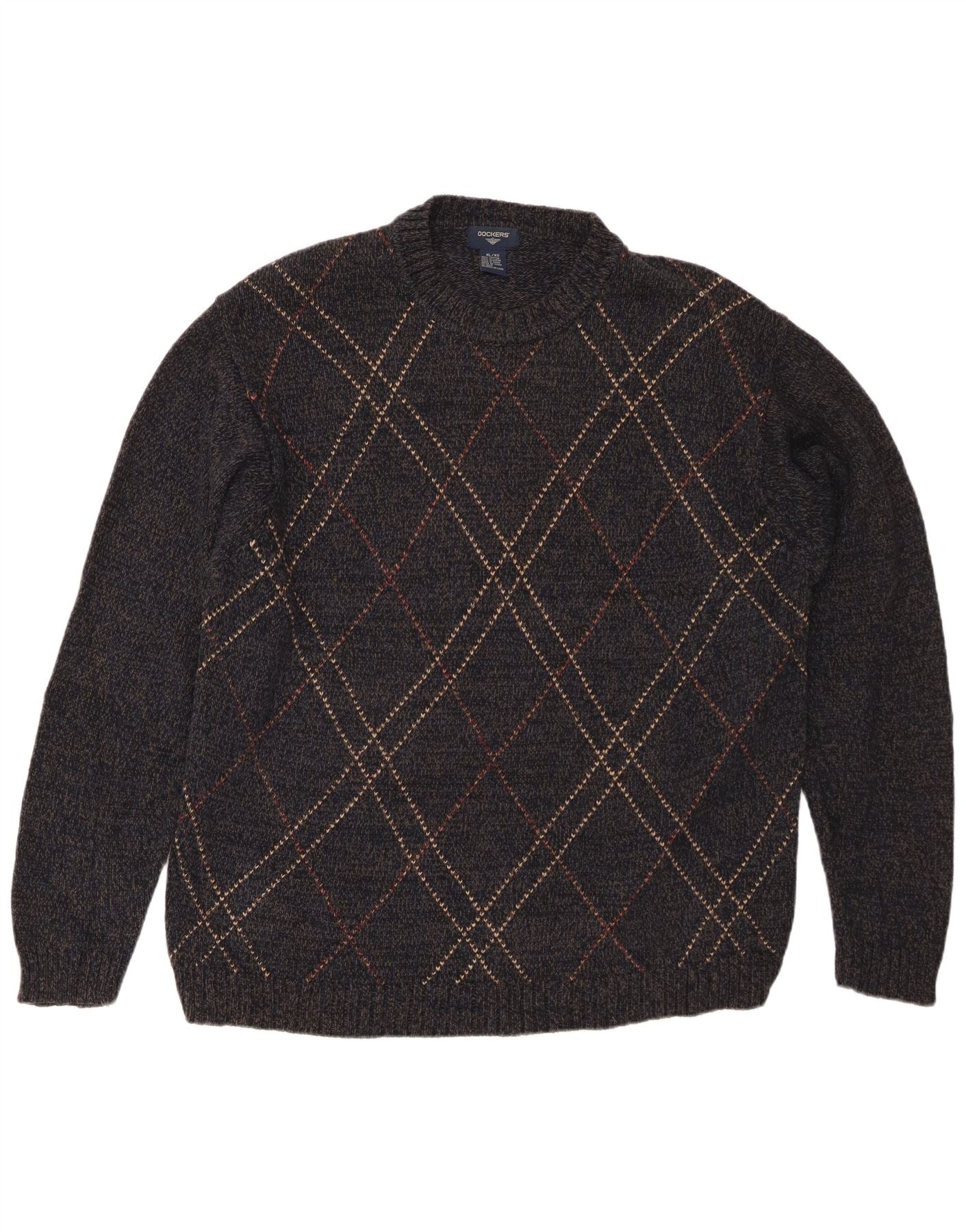 DOCKERS Ανδρικό πουλόβερ με λαιμόκοψη XL Navy Blue Argyle/Διαμαντένιο βαμβάκι