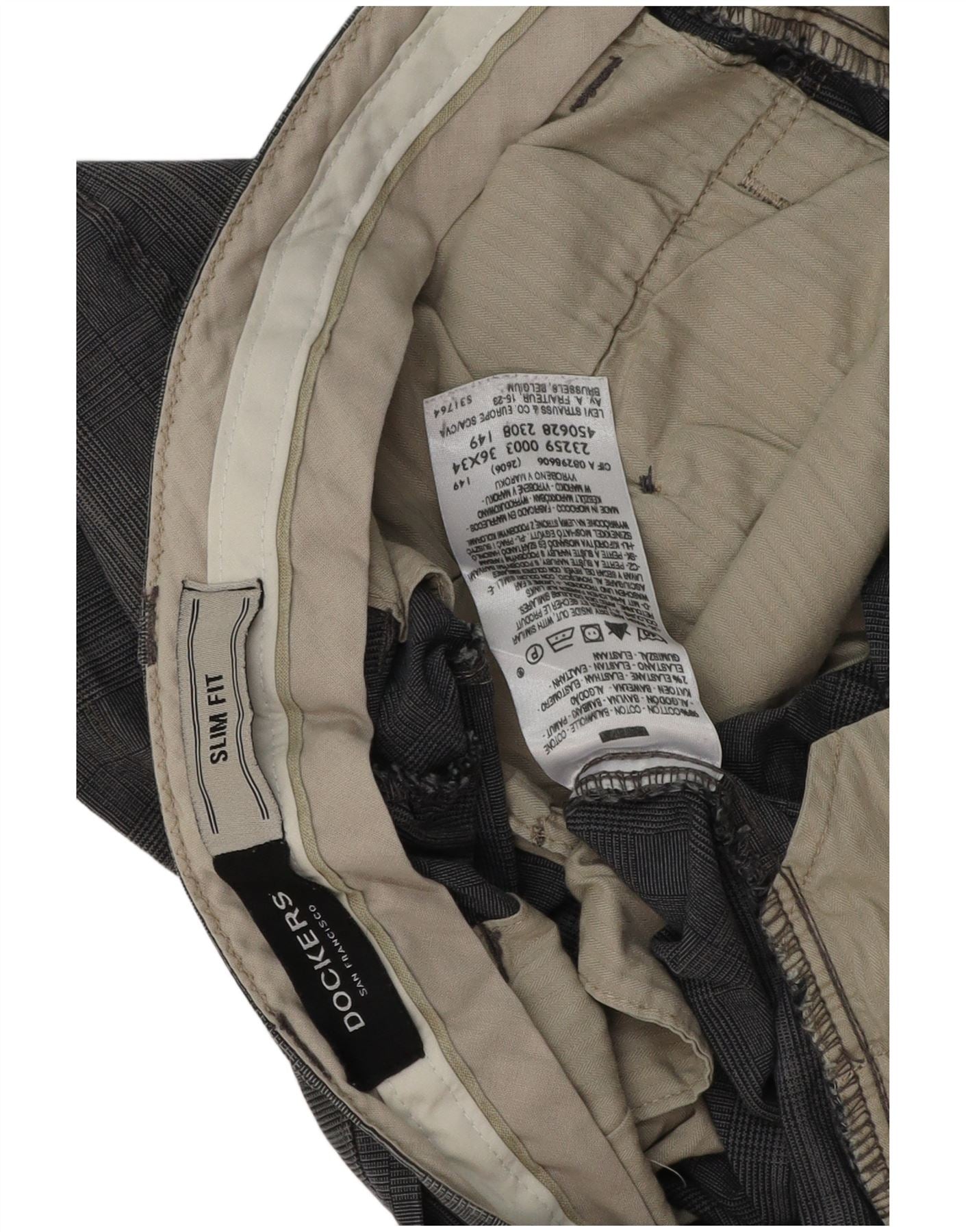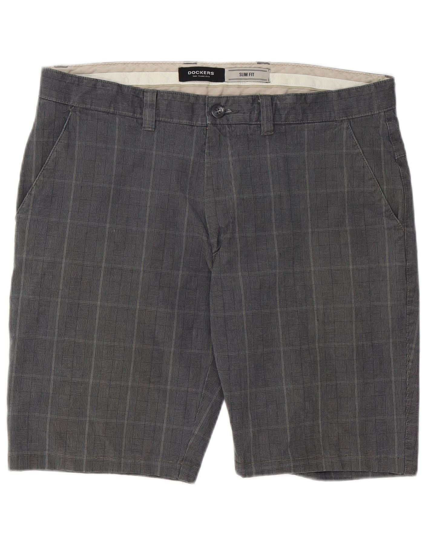 DOCKERS Mens Slim Fit Chino Shorts W36 Large Grey Houndstooth Cotton