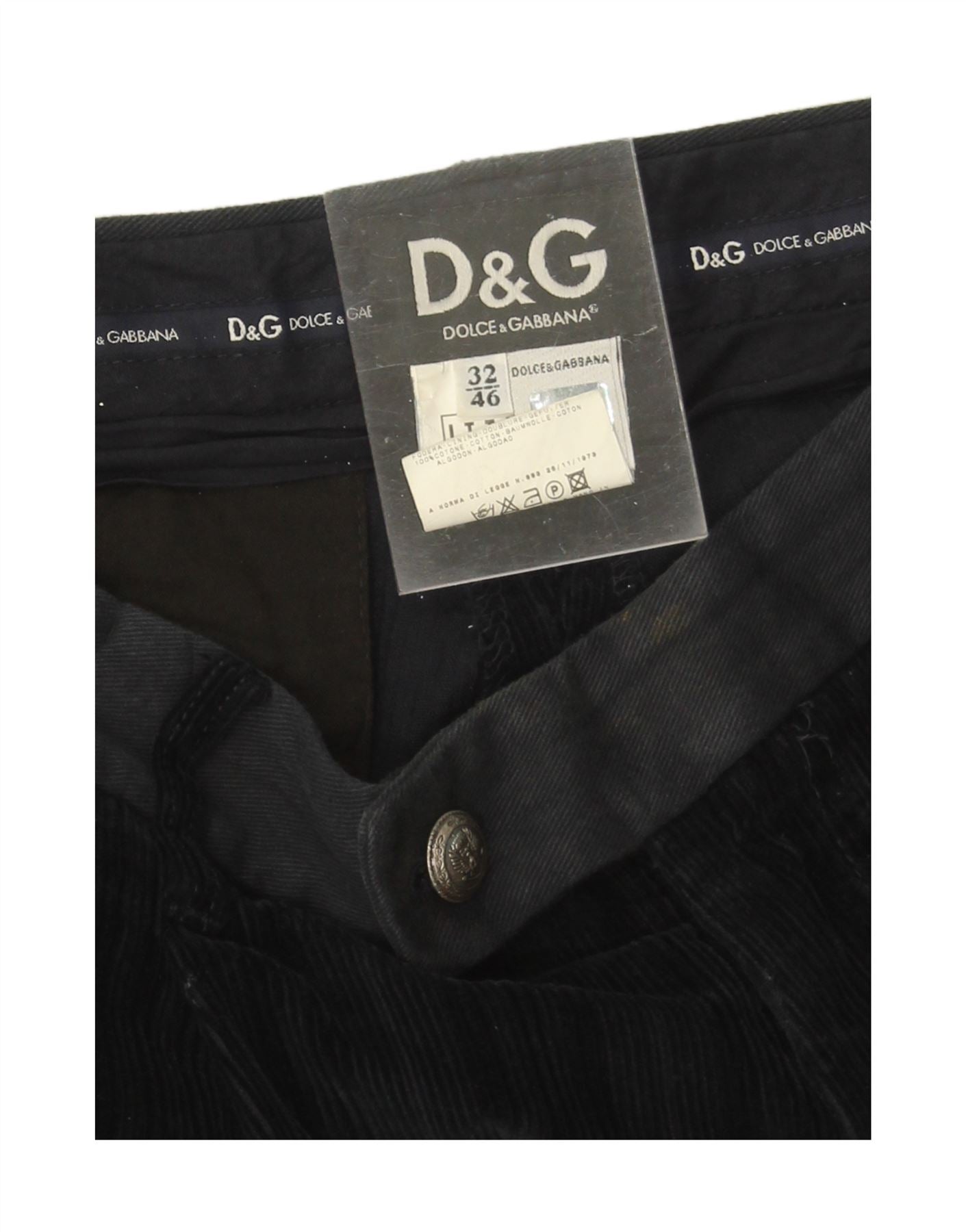 DOLCE & GABBANA Mens Corduroy Trousers IT 46 Small W32 L37 Navy Blue