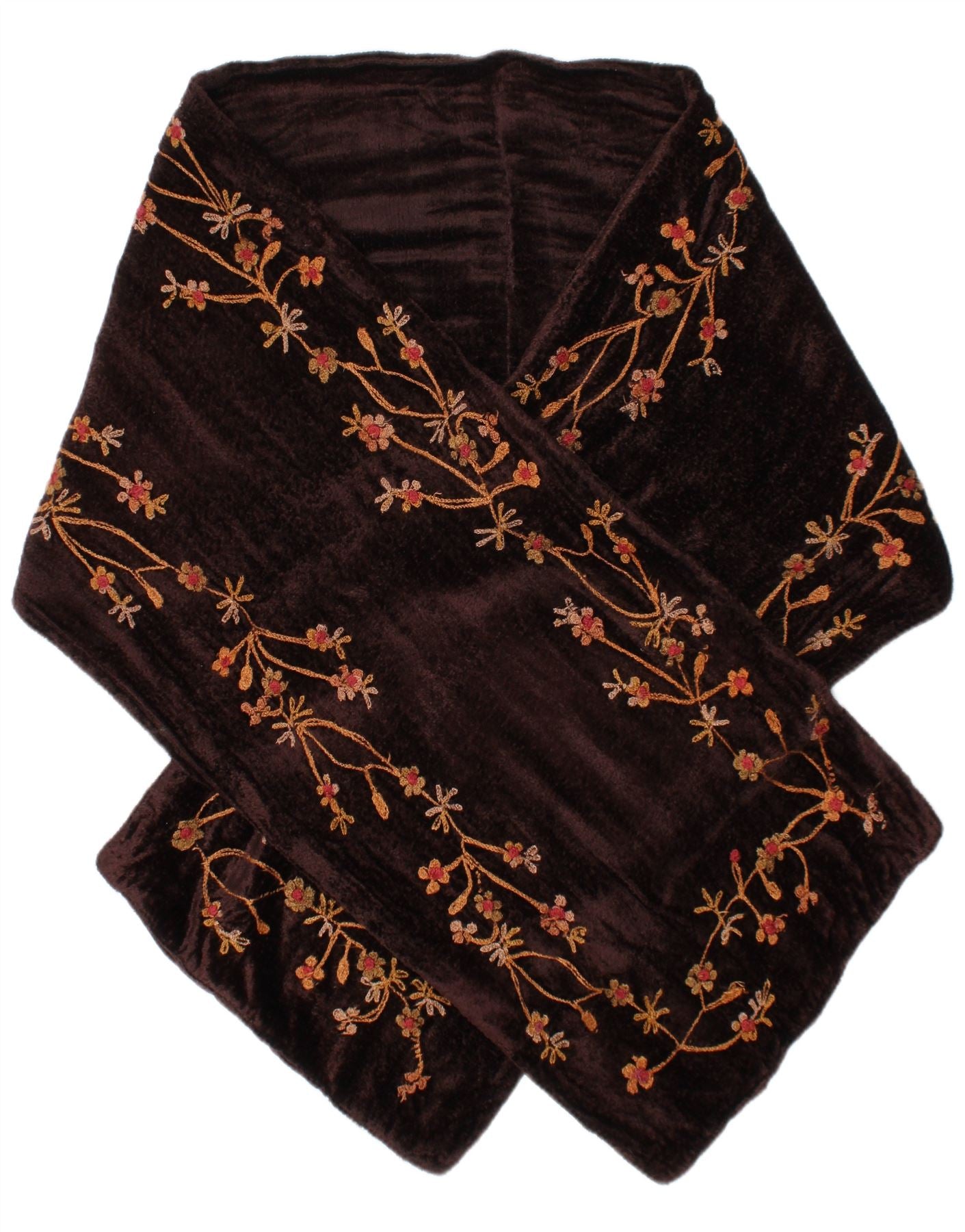 EAST Womens Velvet Stole Scarf One Size Brown Floral Viscose Bohemian