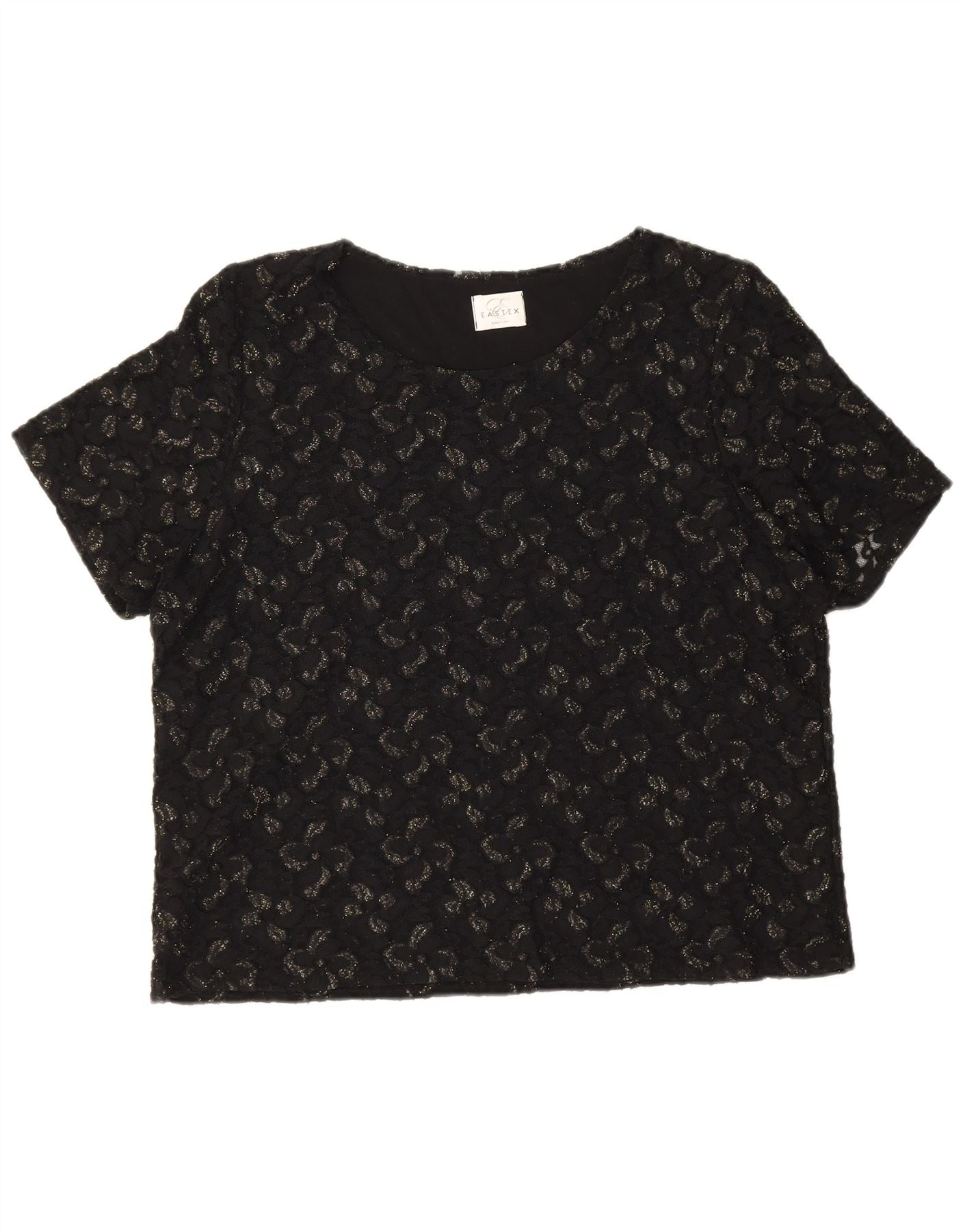 - Περιγραφή AI: Αυτή η γυναικεία μπλούζα μπλούζα Eastex είναι κατασκευασμένη από λεπτή μαύρη δαντέλα, με ένα διακριτικό λουλουδάτο μοτίβο. Προσφέρει ελαφριά κατασκευή με επένδυση για άνεση. Η στρογγυλή λαιμόκοψη και τα κοντά μανίκια δημιουργούν μια κλασική σιλουέτα. Η περίπλοκη φλοράλ δαντέλα του προσφέρει κομψές λεπτομέρειες. Σχεδιασμένο ως πουλόβερ με κανονική εφαρμογή, αυτό το τοπ είναι μια ευέλικτη προσθήκη σε κάθε γκαρνταρόμπα.