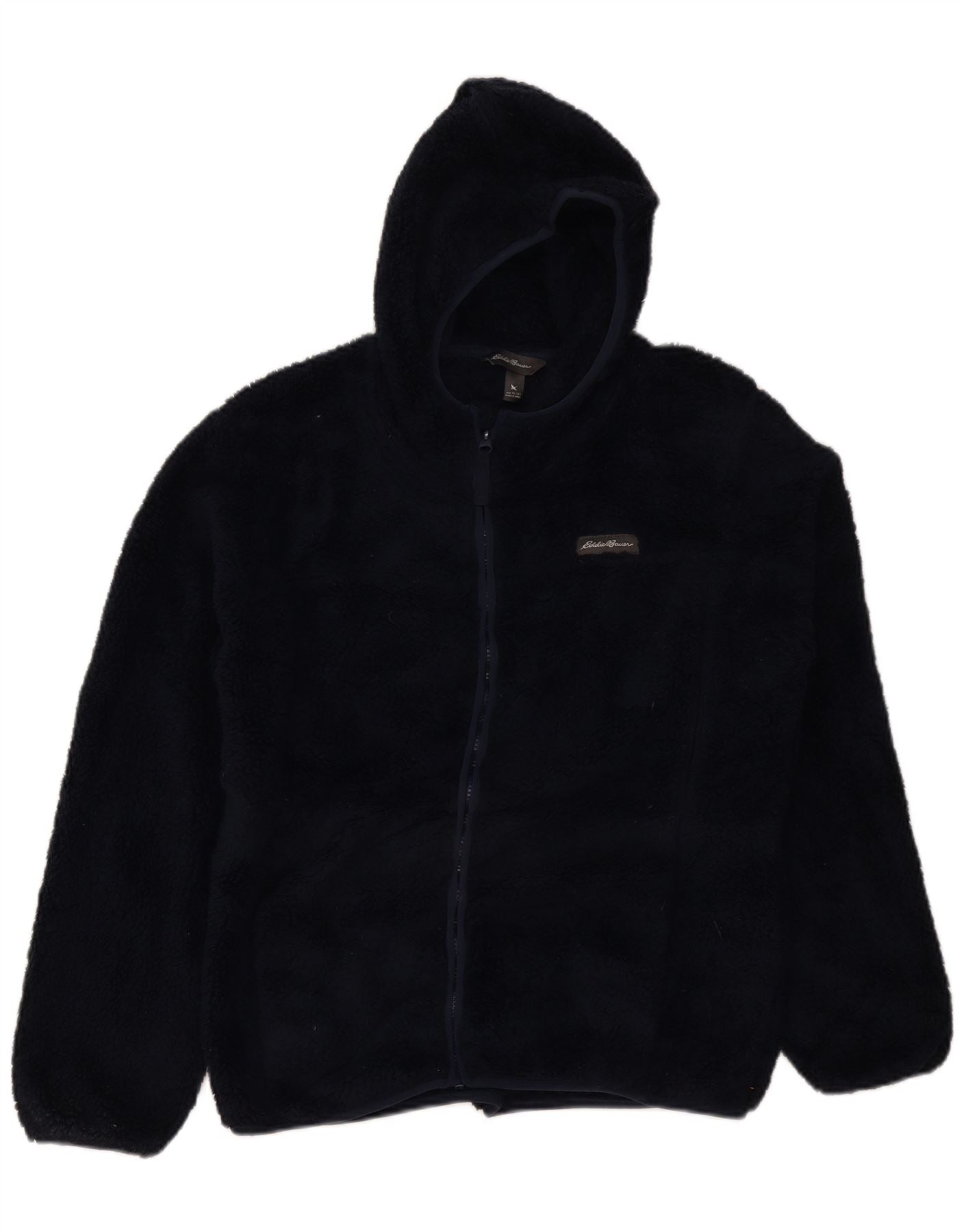 EDDIE BAUER Boys Hooded Fleece Jacket 15-16 Years XL Navy Blue Polyester